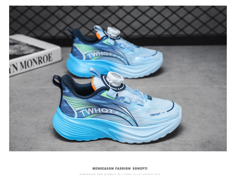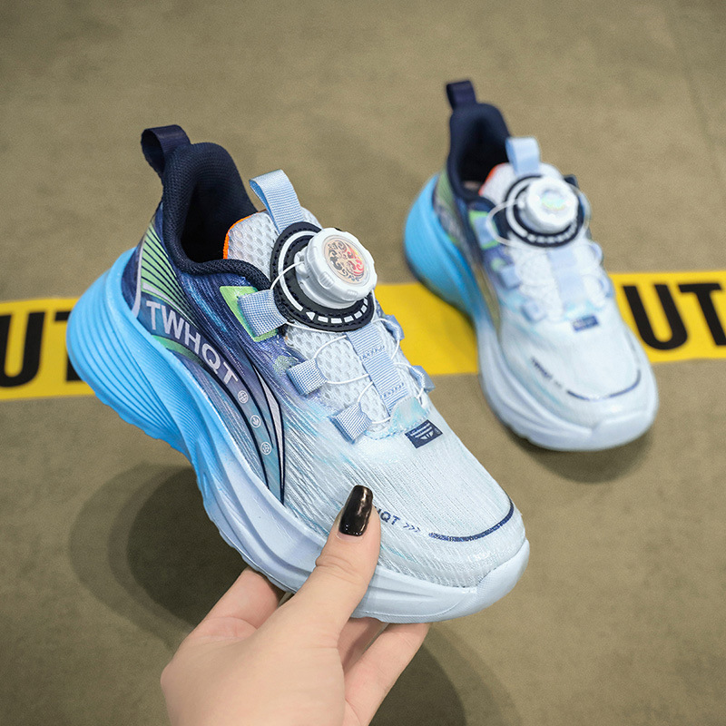 어린이 농구 신발 소년 봄과 여름 2025 새로운 소년 통기성 미끄럼 충격 흡수 운동화 중 및 대형 어린이 달리기 신발
