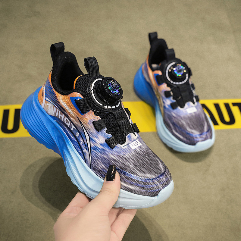 어린이 농구 신발 소년 봄과 여름 2025 새로운 소년 통기성 미끄럼 충격 흡수 운동화 중 및 대형 어린이 달리기 신발스토어 가기