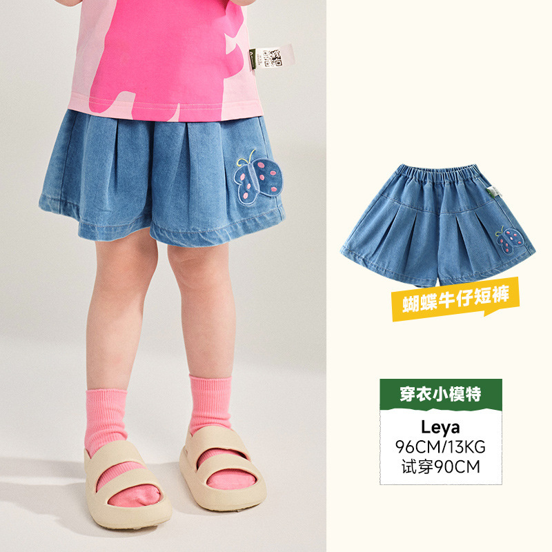 아미라 아동복 2026년 여름 신상 여아 나비 데님 반바지 아동용 스위트 플리츠 데님 팬츠스토어 가기