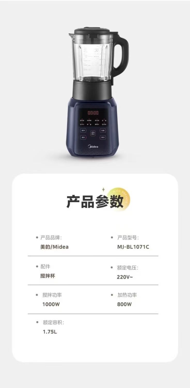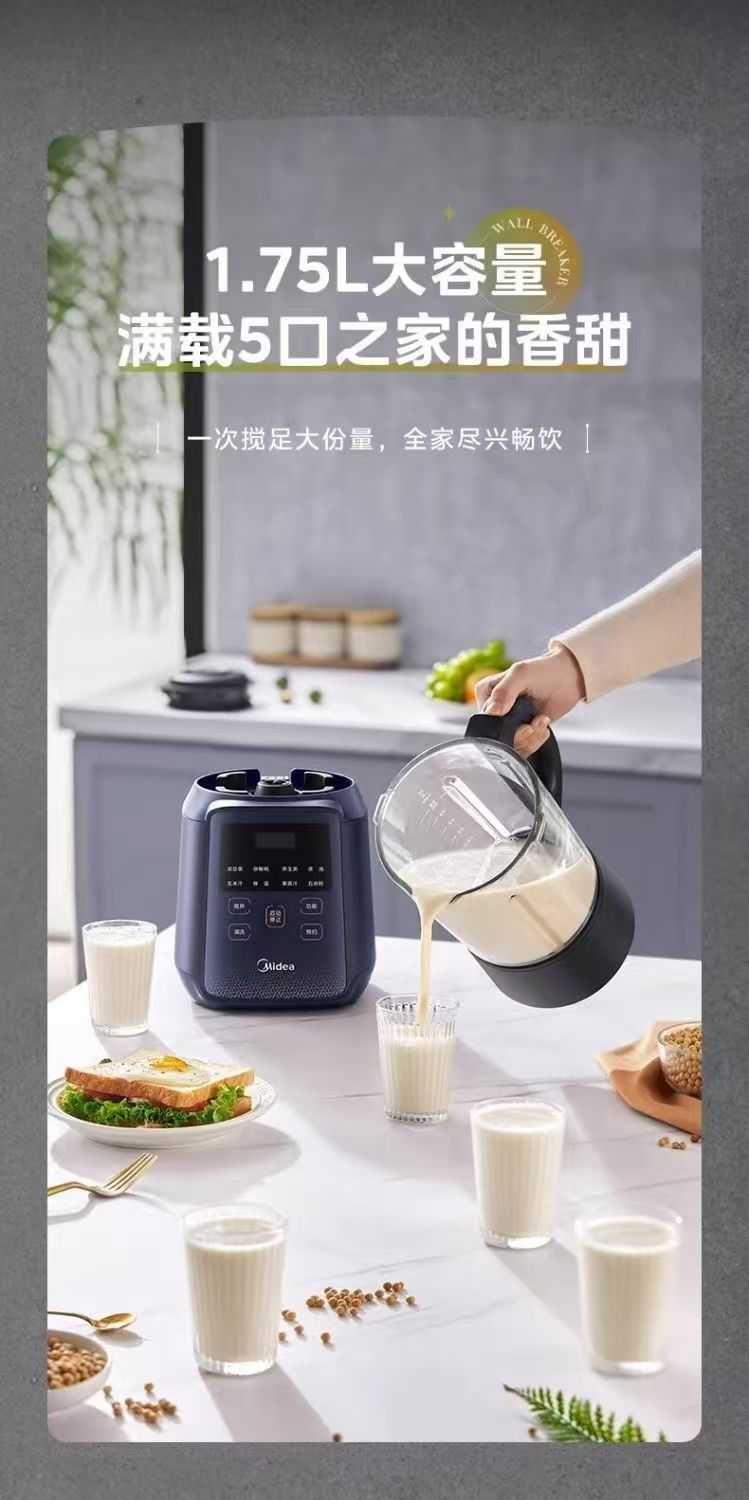 Midea MJ-BL1071C 벽 속보 기계 가구 1.75 리터 대용량 다기능 지능형 예약 두유 기계 주스 표현스토어 가기
