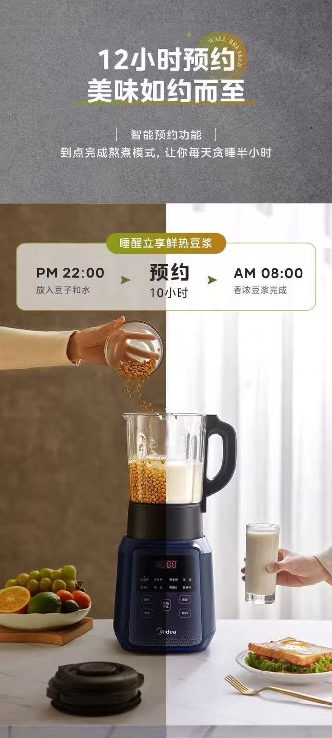 Midea MJ-BL1071C 벽 속보 기계 가구 1.75 리터 대용량 다기능 지능형 예약 두유 기계 주스 표현