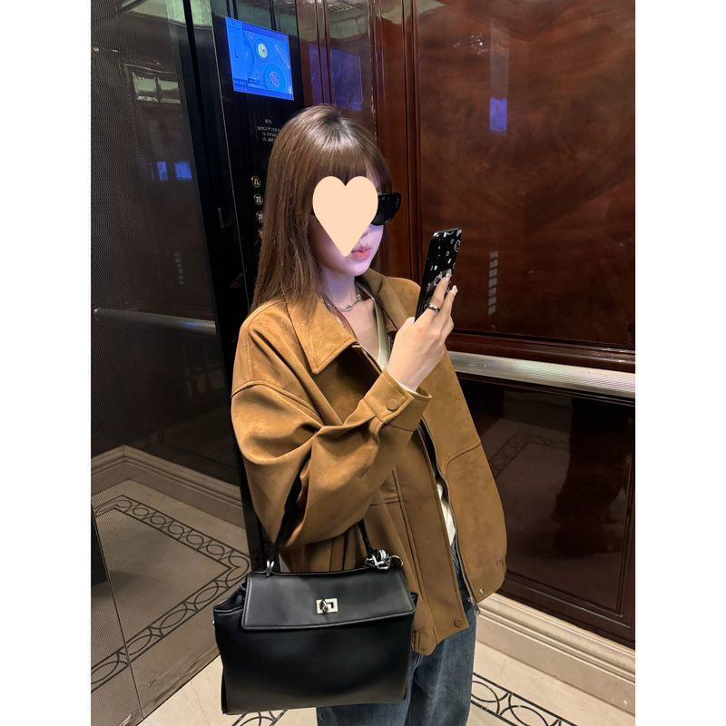 미국 레트로 스웨이드 재킷 여자 2025 봄 폭발 느슨한 옷깃 캐주얼 올 매치 슬리밍 재킷 트렌디스토어 가기