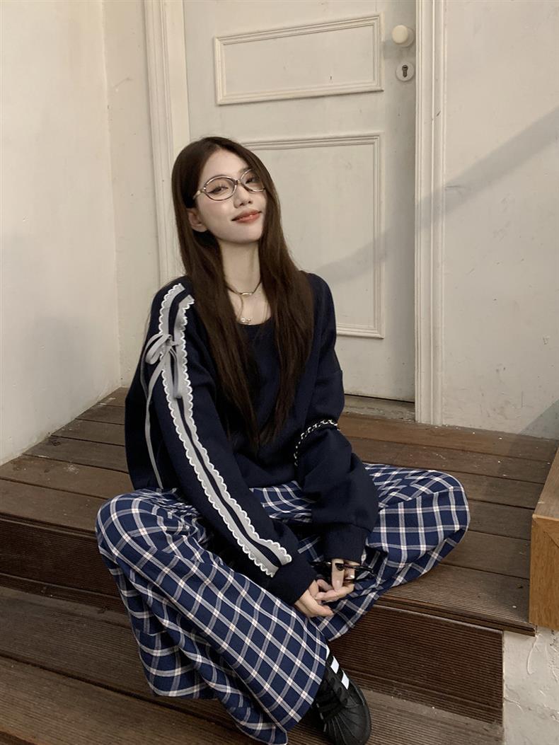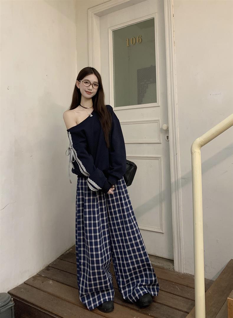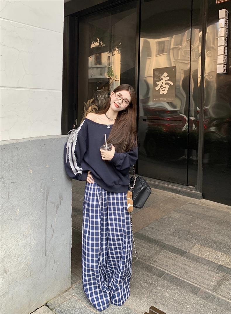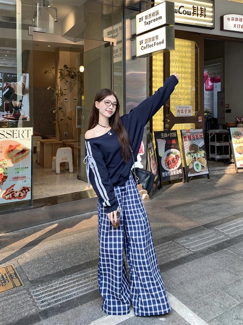 레이스 활 오픈 숄더 긴팔 땀 여자 가을 새 한국 스타일 캐주얼 루즈 탑, 날씬한 어깨스토어 가기