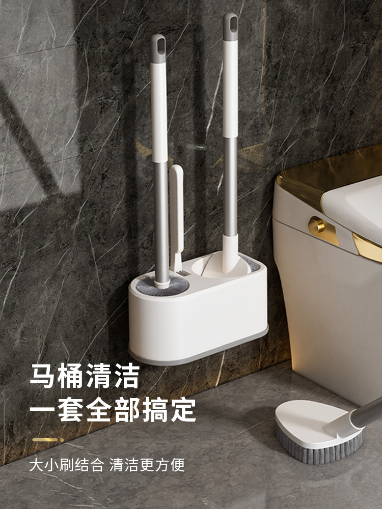 화장실 브러시, 사각지대 없이 깨끗하게, 부드러운 솔, 긴 손잡이, 화장실용품, 걸이형 및 스탠드형, 세 가지 브러시 세트스토어 가기