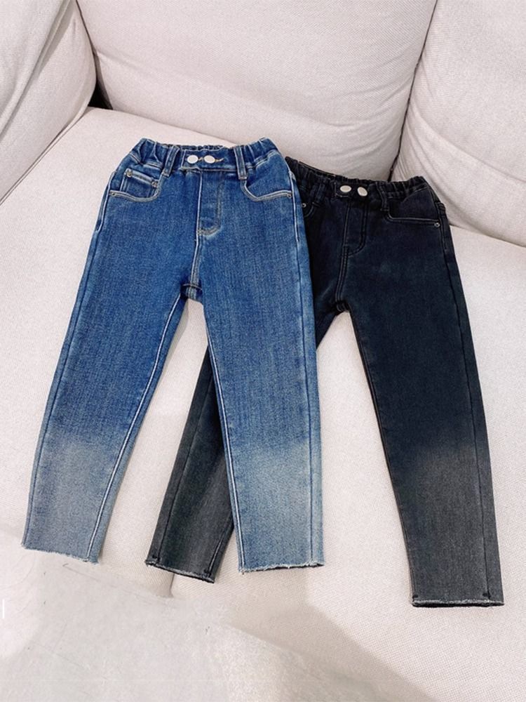 봄과 가을 소녀 청바지 아기의 서양식 어린이 개성 유행 브랜드 한국 스타일 세련된 그라디언트 슬림 핏 연필 바지