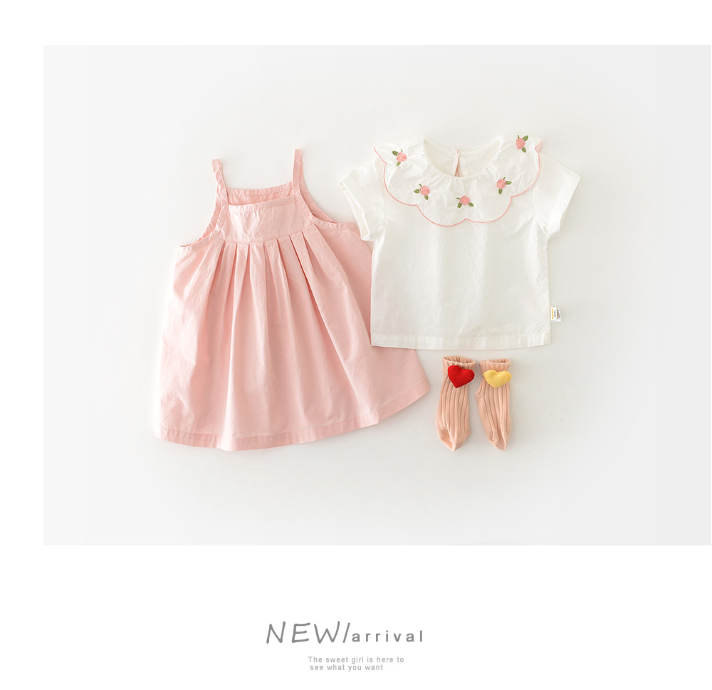 2025 여름 소녀의 공주 슬링 주름 치마 세트 아기 꽃 큰 옷깃 2 피스 52812