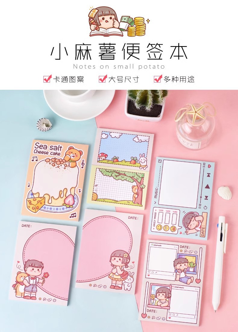 더 작은 감자 메모장 귀여운 만화 손 계정 소재 다기능 메시지 메모 메모 계획 목록 추가
