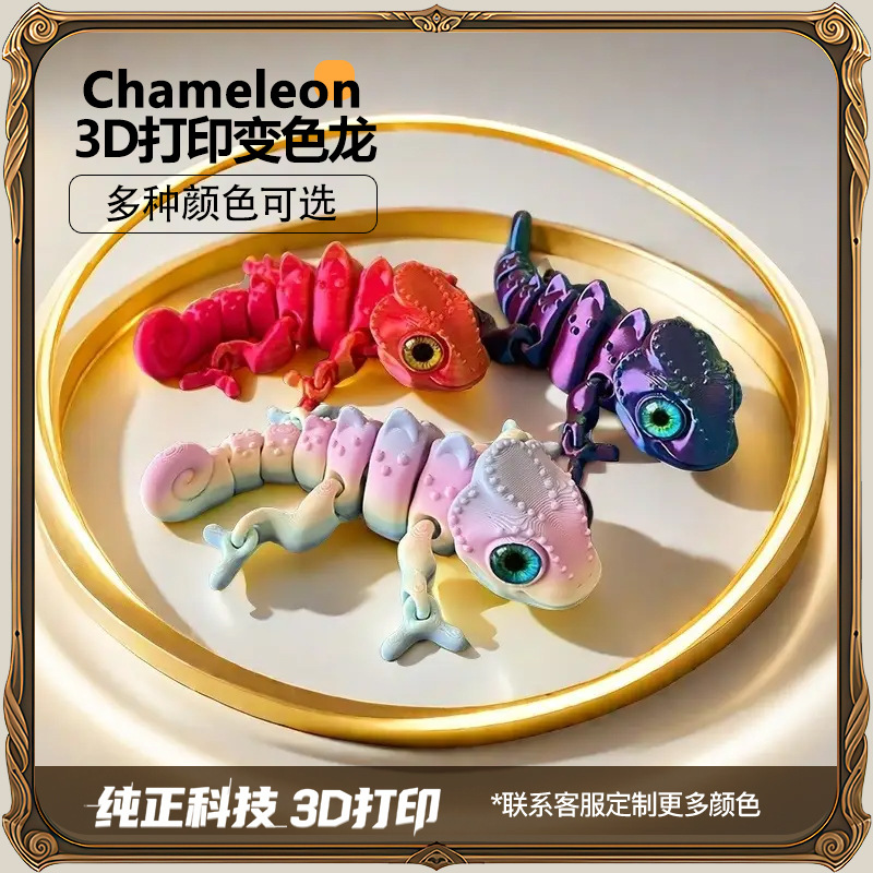 국경 간 폭발 3D 인쇄 카멜레온 공동 이동식 어린이 장난감 시뮬레이션 동물 장식 장식품