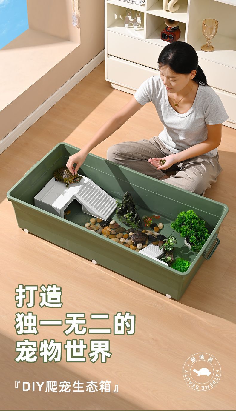 거북이 캔을 키우기위한 특수 탱크 가정용 DIY 플라스틱 조경 생태 상자 애완 동물 등반 유리 다른 최종 꿈스토어 가기