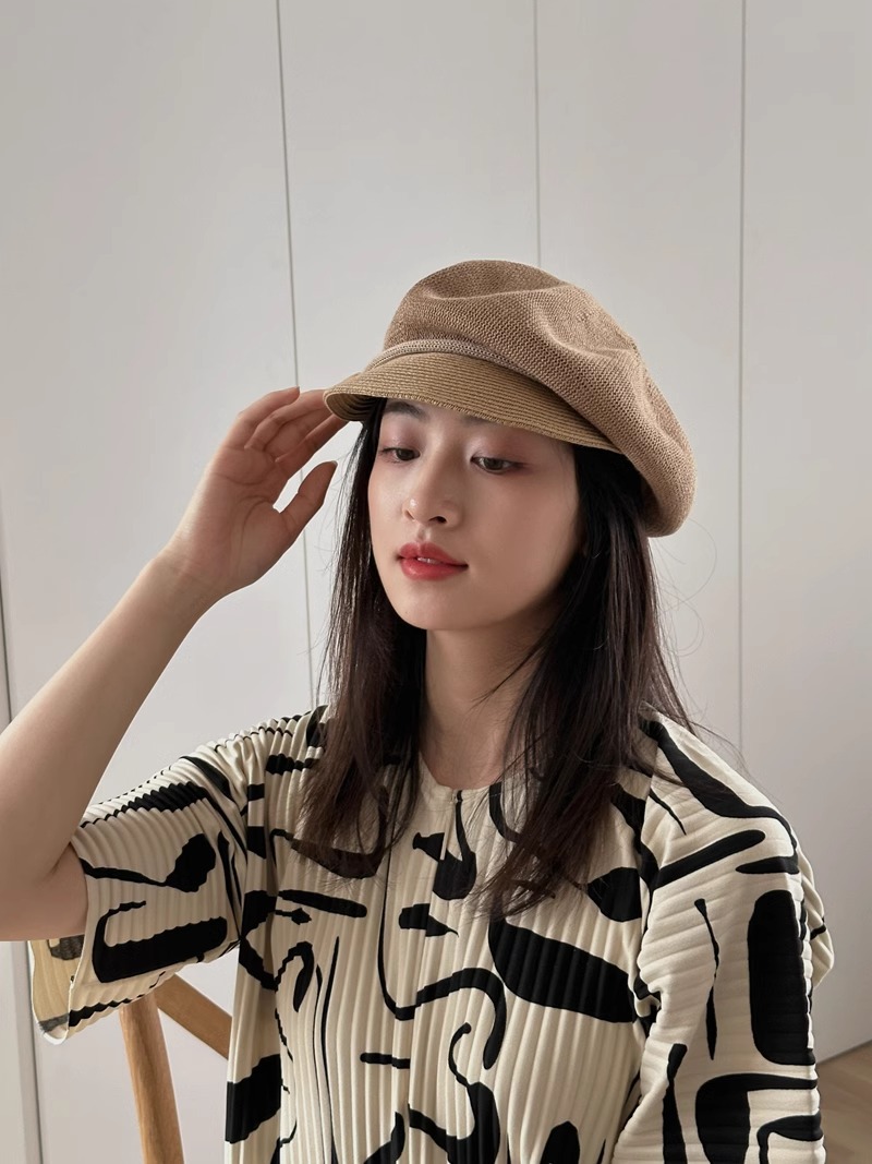 모자 둥근 얼굴은 스타 베레 일본 패션 리넨 니트 잔디 그림 모자 팔각형 모자를 입을 수 있습니다스토어 가기
