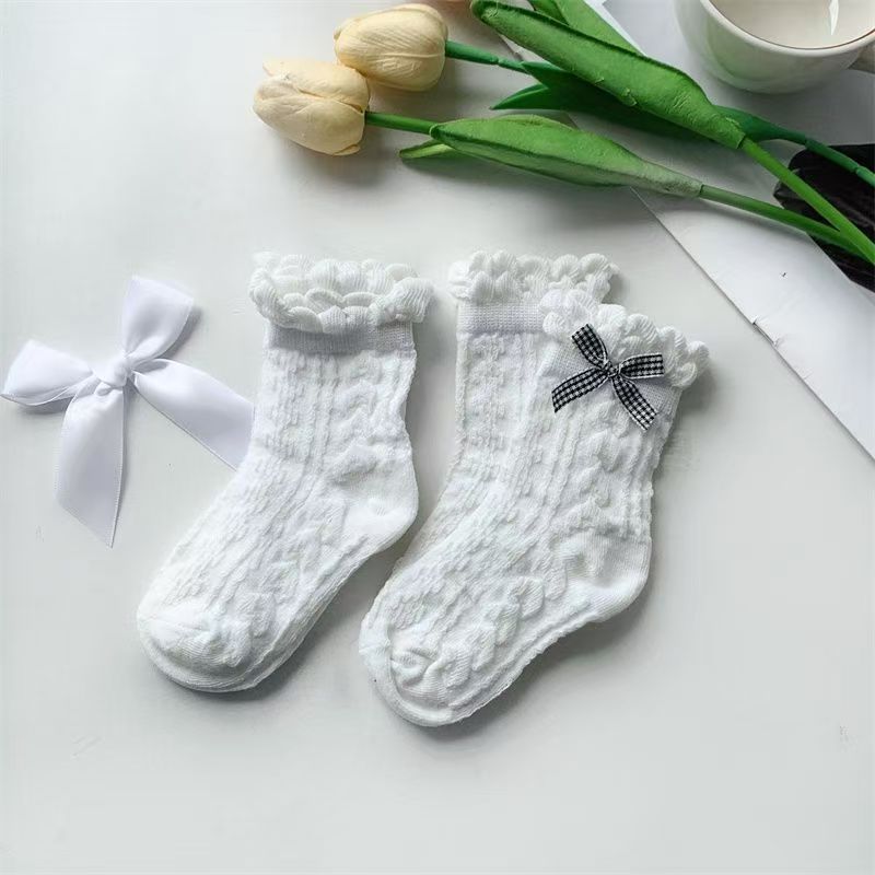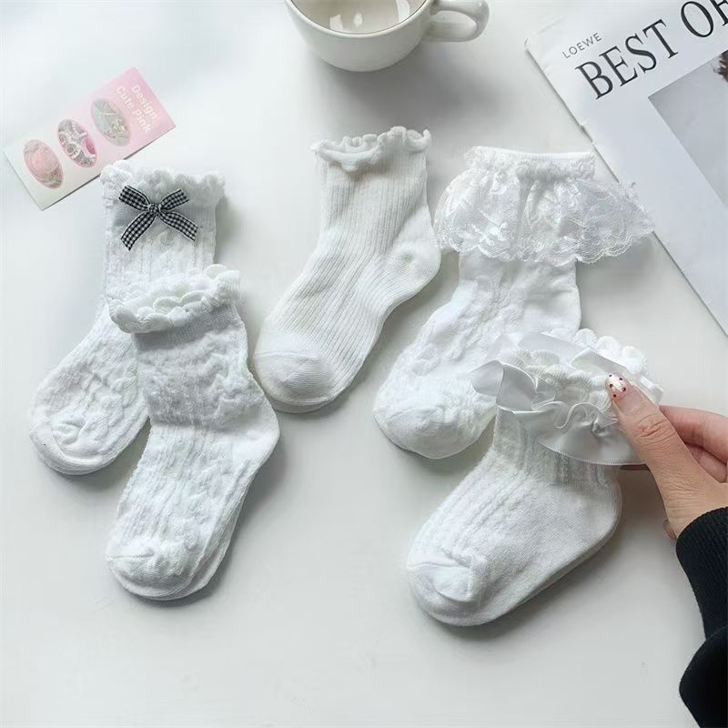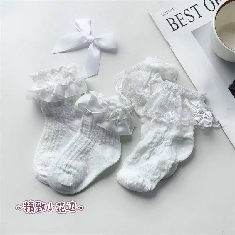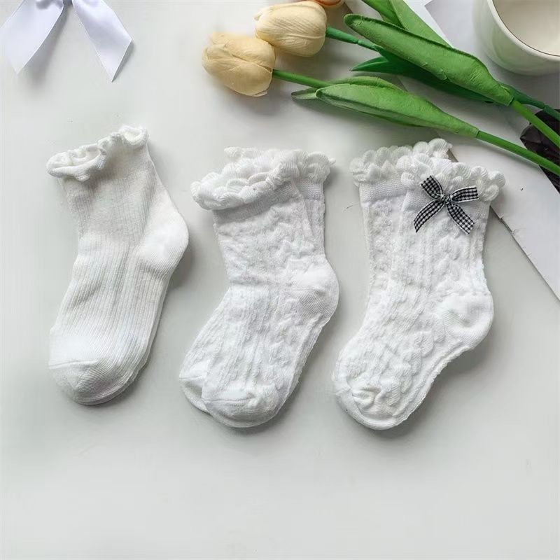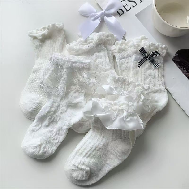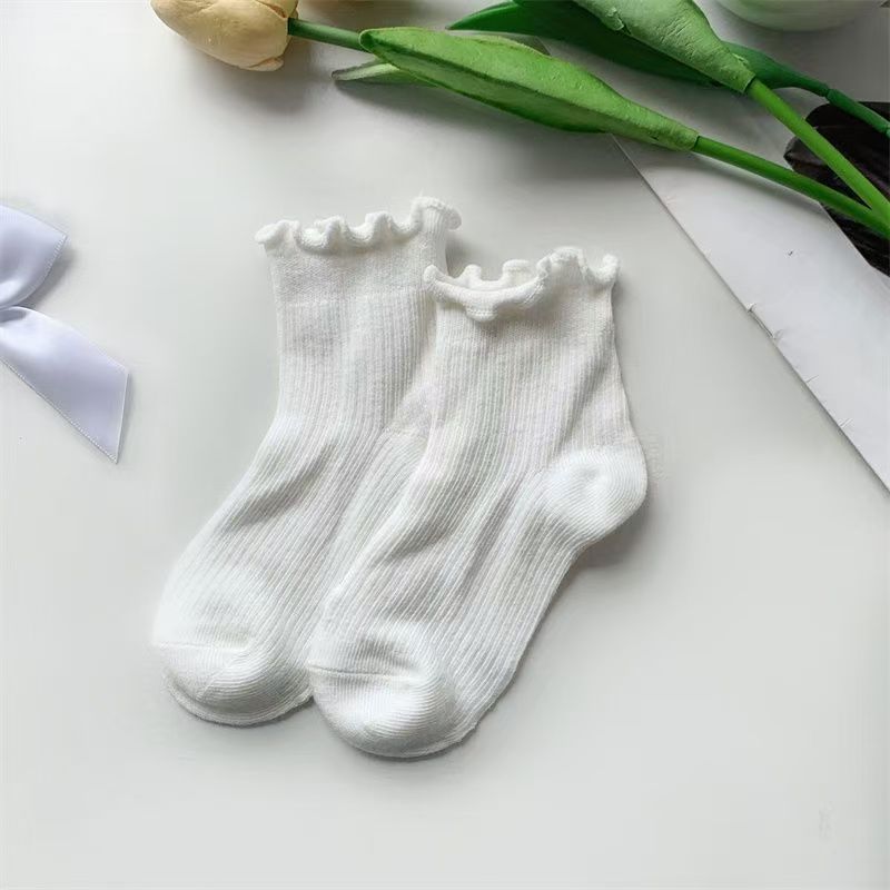 솔리드 컬러 활 화이트 우드 이어 레이스 꽃 공주 로리타 양말 메쉬 학생 귀여운 짧은 양말