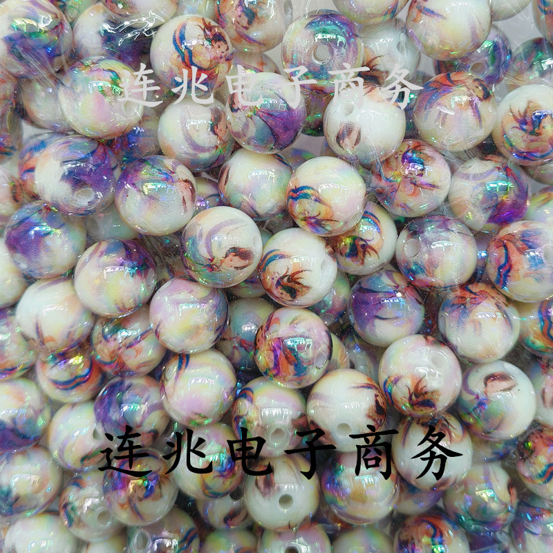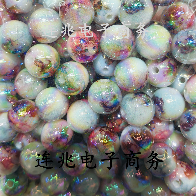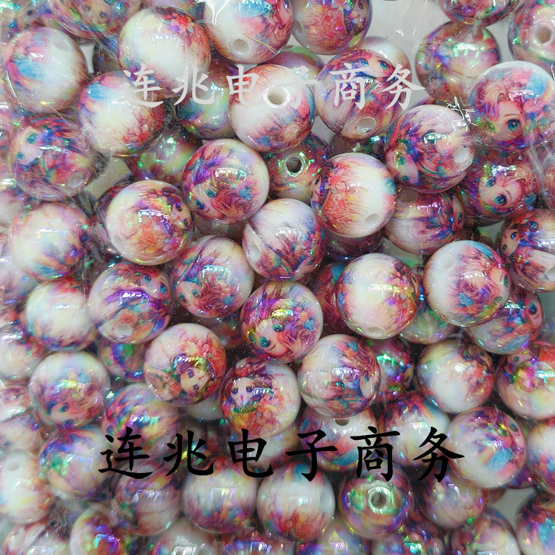 印刷圆珠古风美女串珠尺寸约16MM,一包200个,有现货可以很快发货,没有定做单款单色要几千起