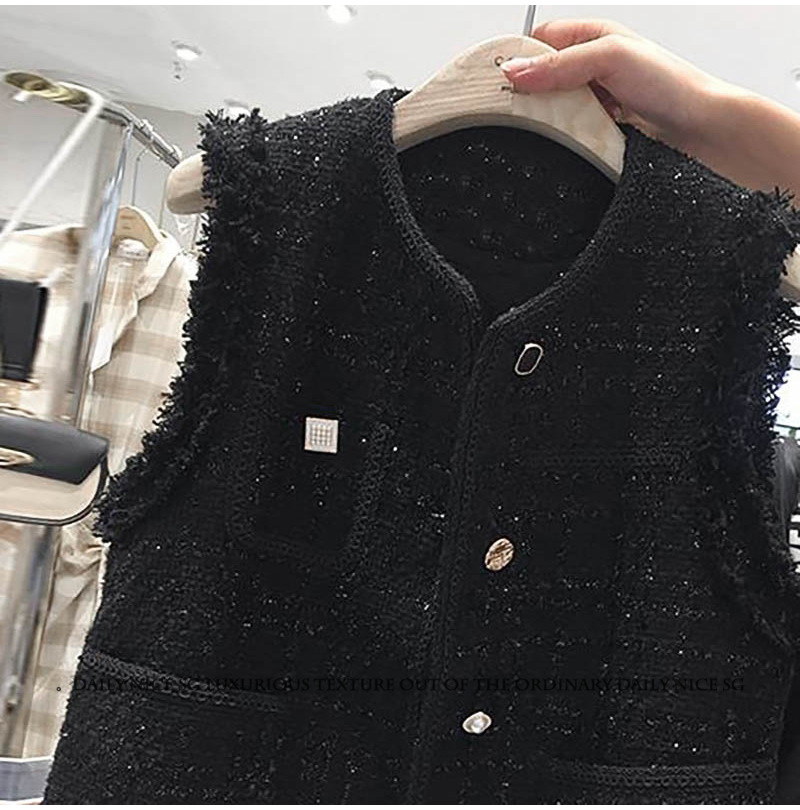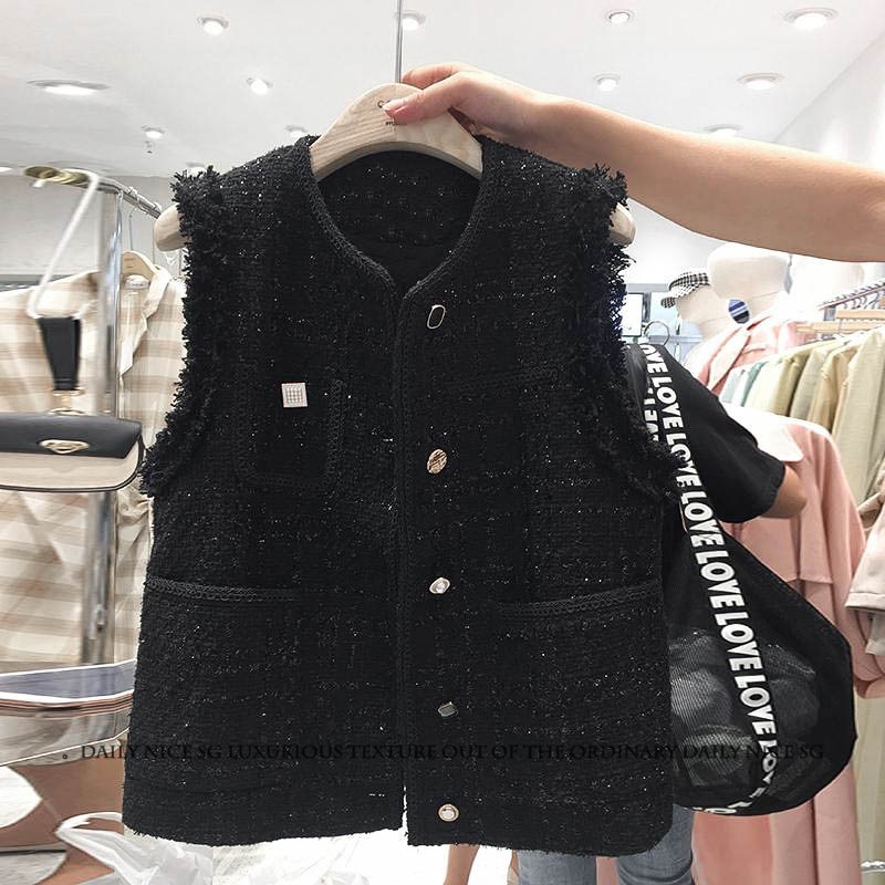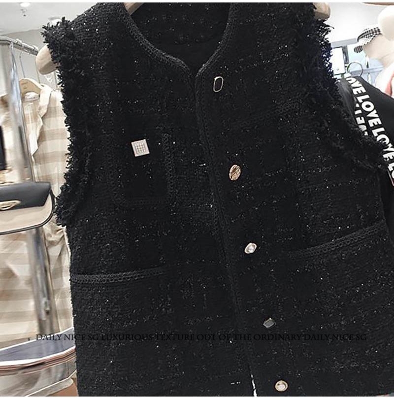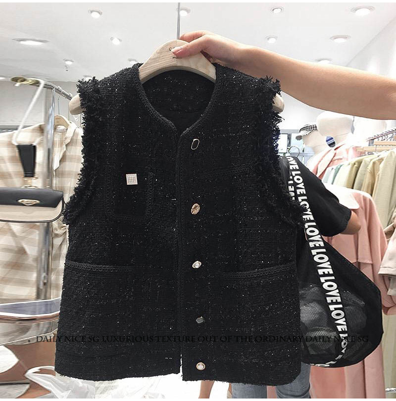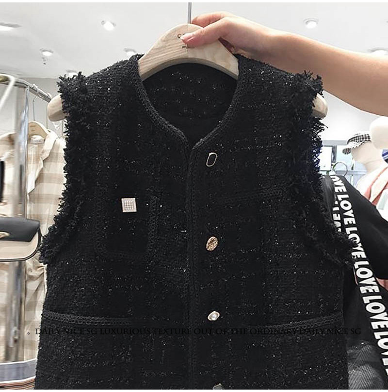 새로운 프랑스 틈새 디자인 센스 샤넬 스타일 우아한 슬럽 밝은 실크 슬림 작은 조끼 코트 여성 조끼스토어 가기