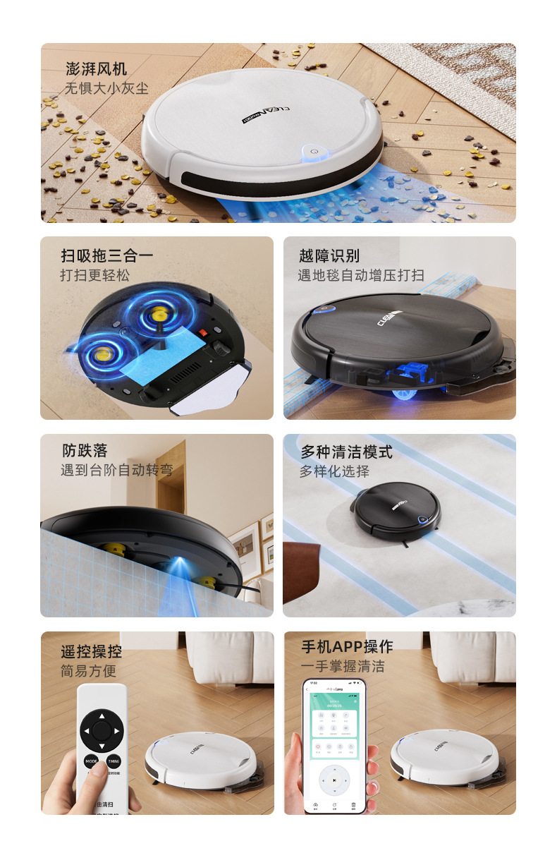 원격 제어 청소 로봇 완전 자동 가정용 지능형 충전 진공 청소기 흡입 및 스윕 통합 청소 기계 국경스토어 가기