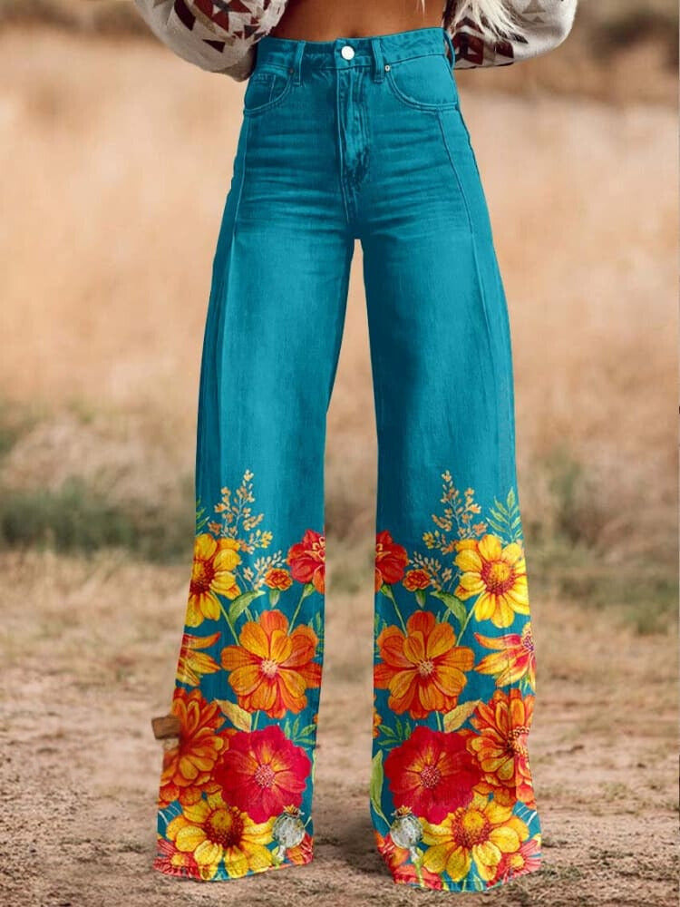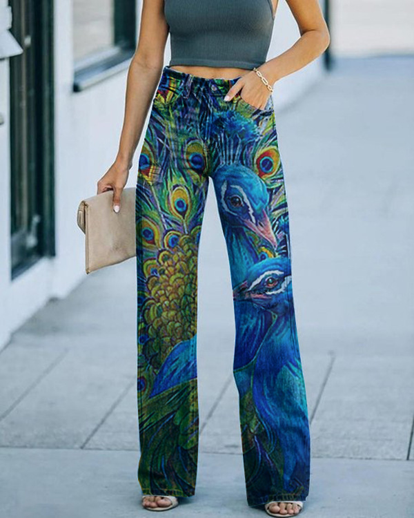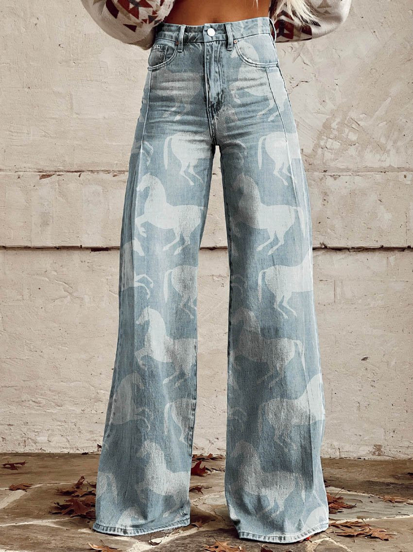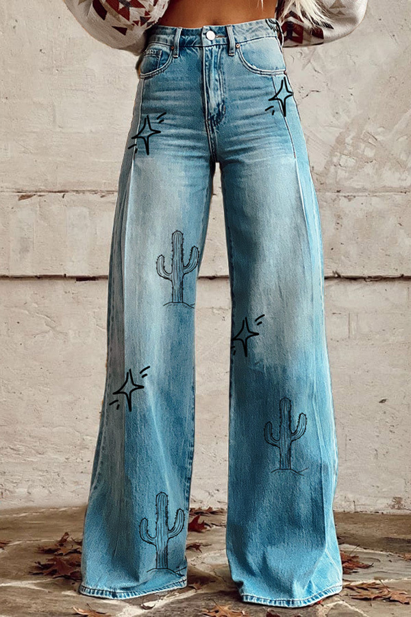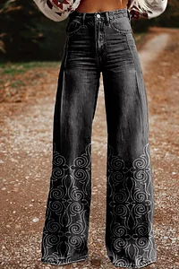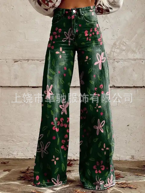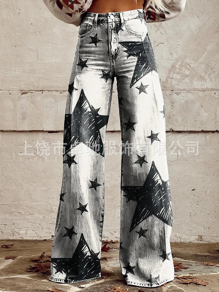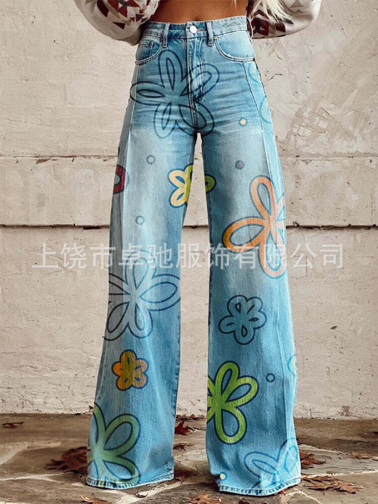 2025 대외 무역 국경 독립 역 이베이 유럽과 미국의 대외 무역 플러스 사이즈 여성 캐주얼 바지 얇은 모방 청바지 넓은 다리스토어 가기