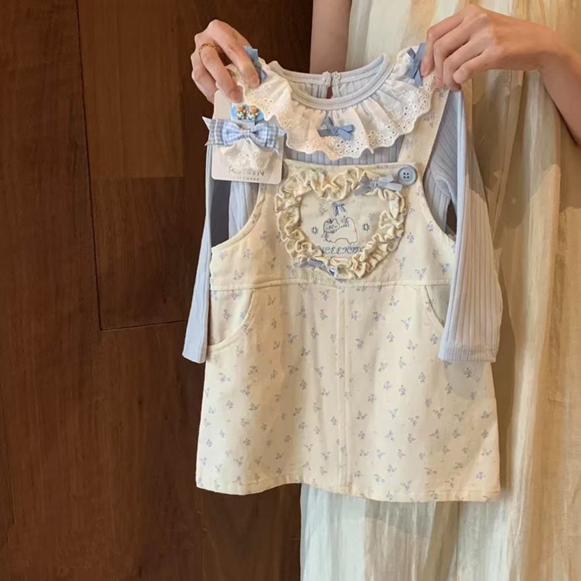 소녀의 봄과 여름 스트랩 스커트 세트 2025 새로운 귀여운 듀얼 사용 아기 소녀의 유행 투피스 스위트 세트스토어 가기