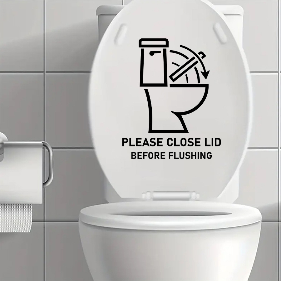 BR3518C "플러싱 전에 뚜껑을 덮으십시오" 창조적 인 만화 영어 자체 접착 벽 스티커 화장실 장식 스티커