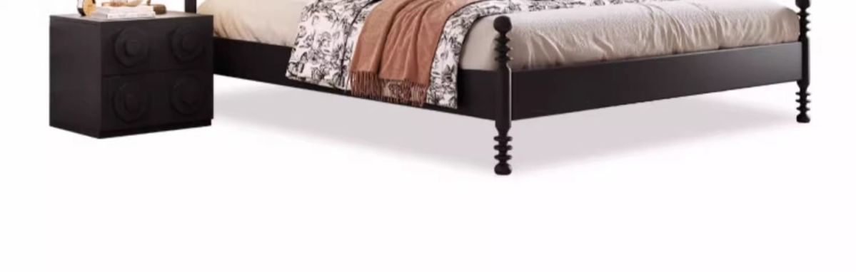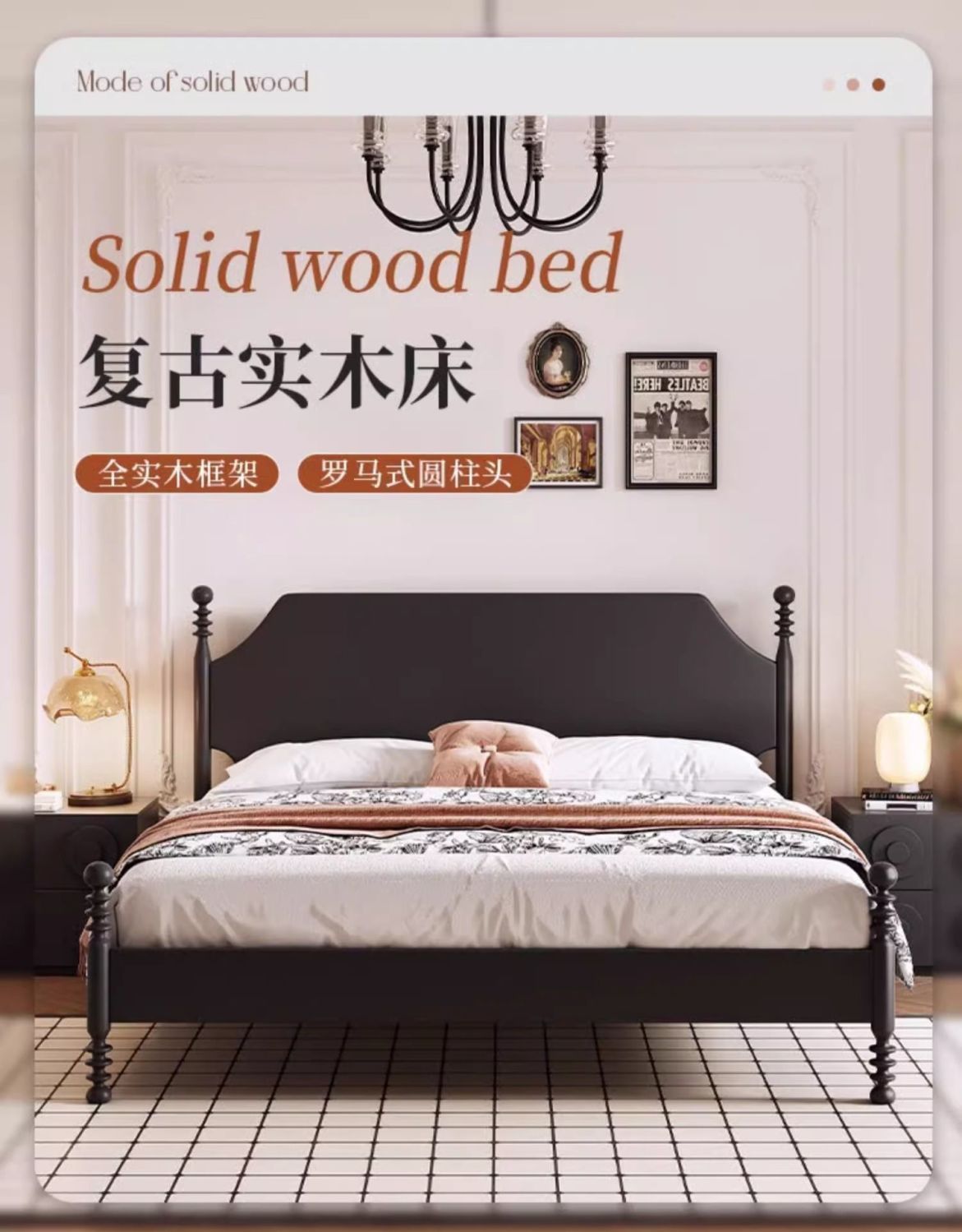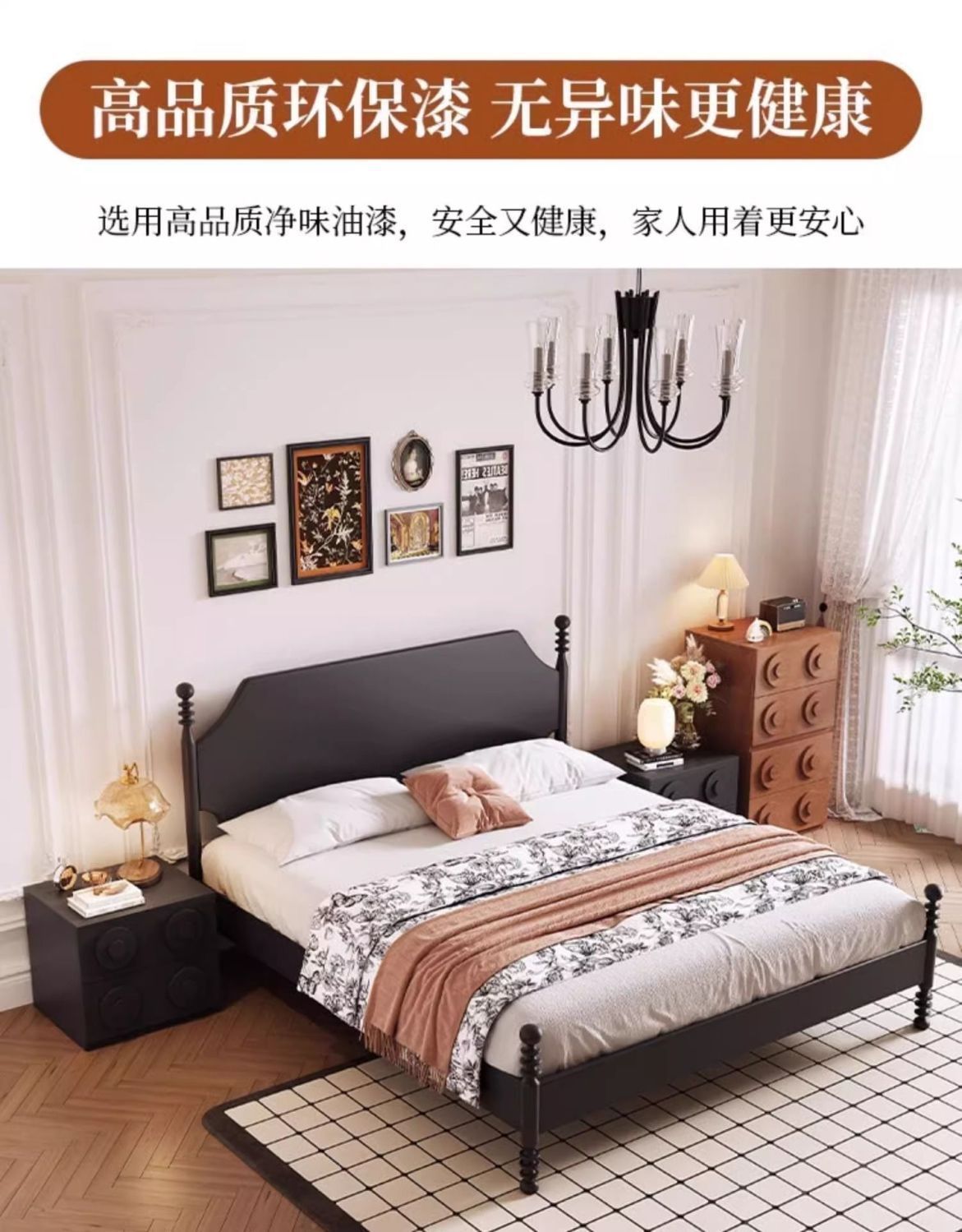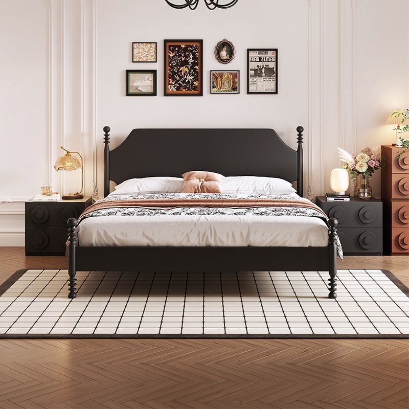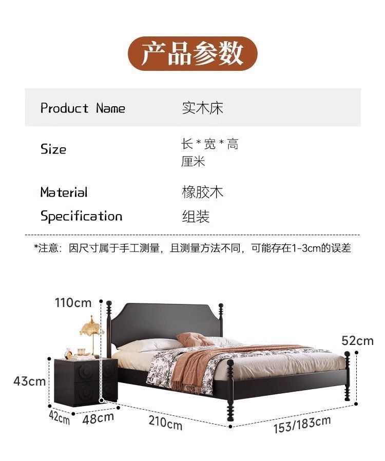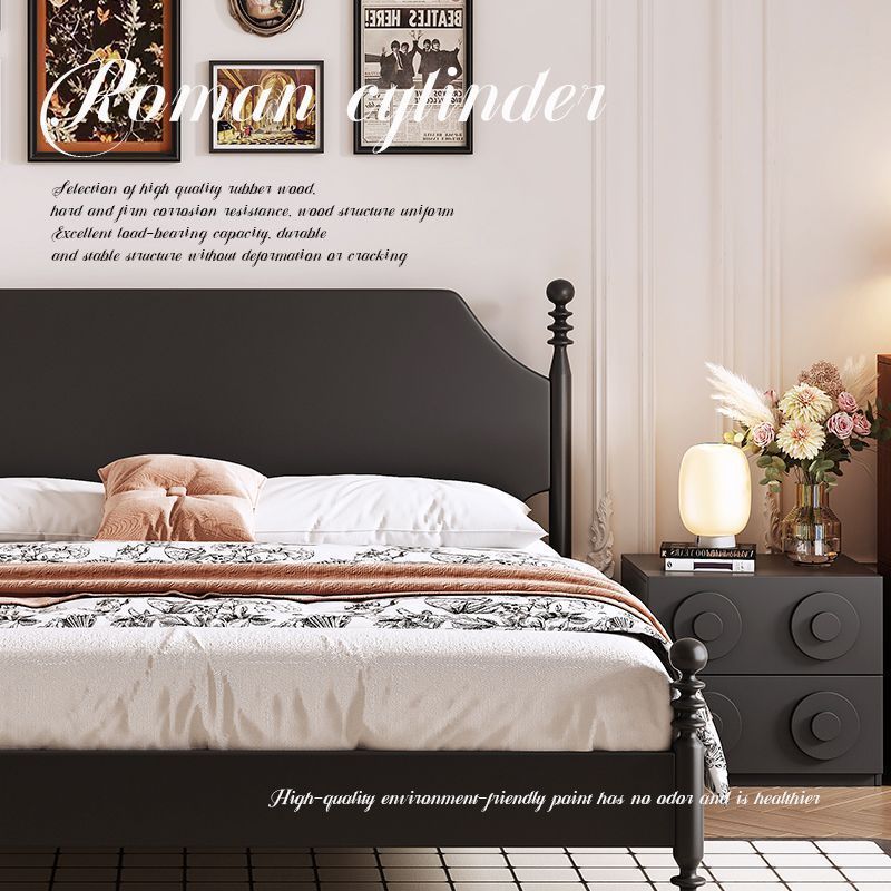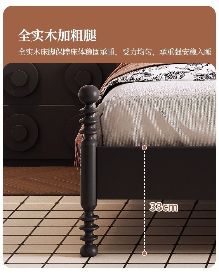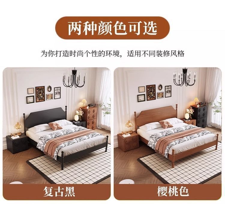 프랑스 스타일 레트로 단단한 나무 침대 현대 미국 스타일 간단한 홈스테이 더블 침대 블랙 중간 고대 스타일 미니멀리스트 작은 아파트 웨딩 침대