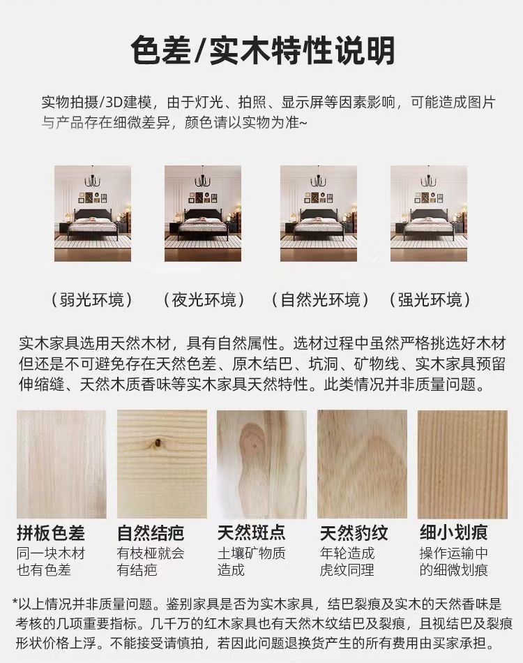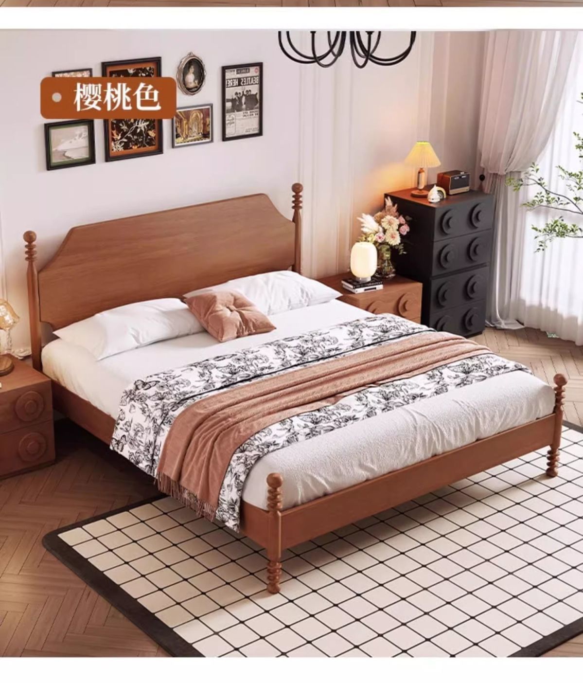 • 레트로 침대 + 코코넛 야자 매트리스 + 캐비닛 2개