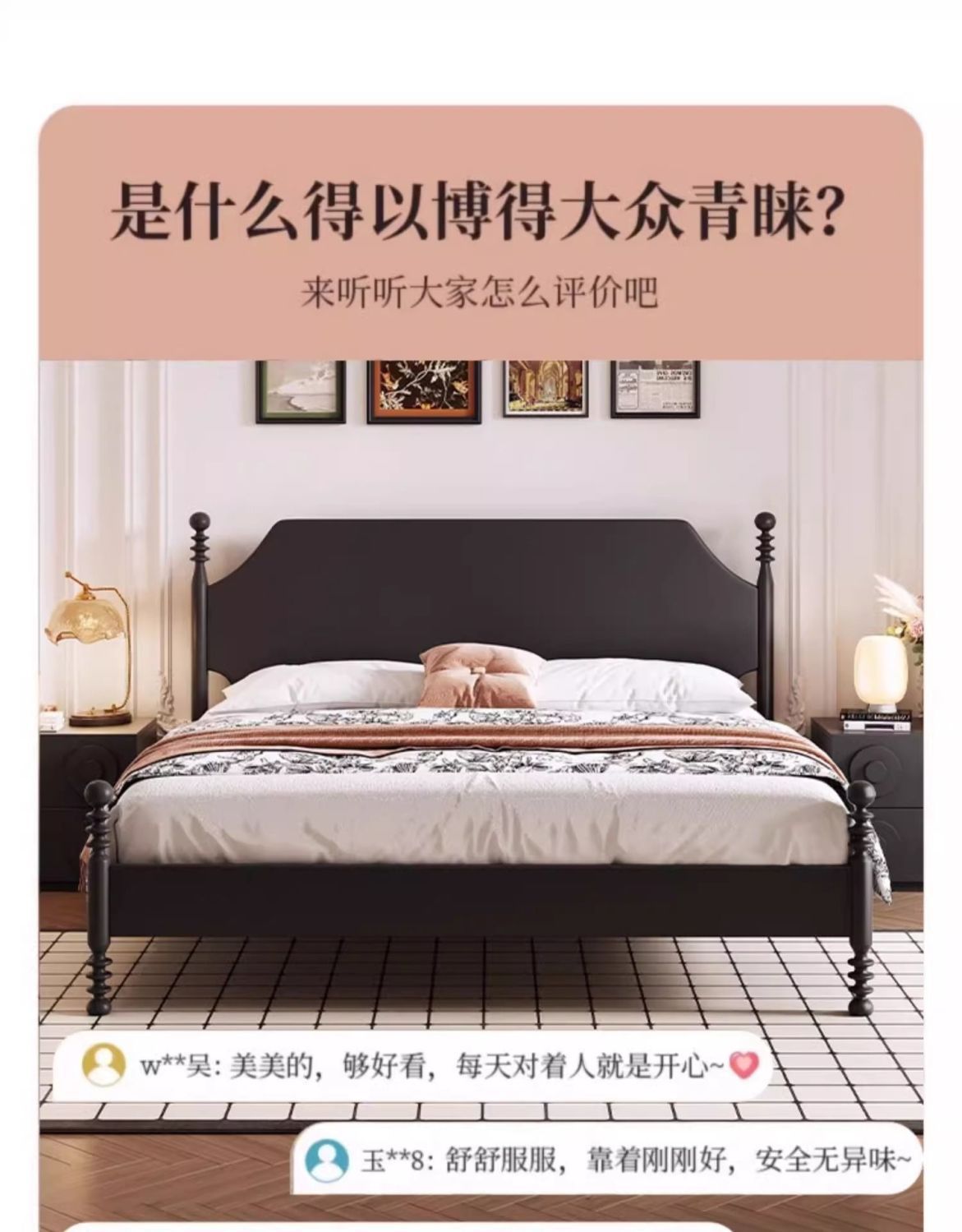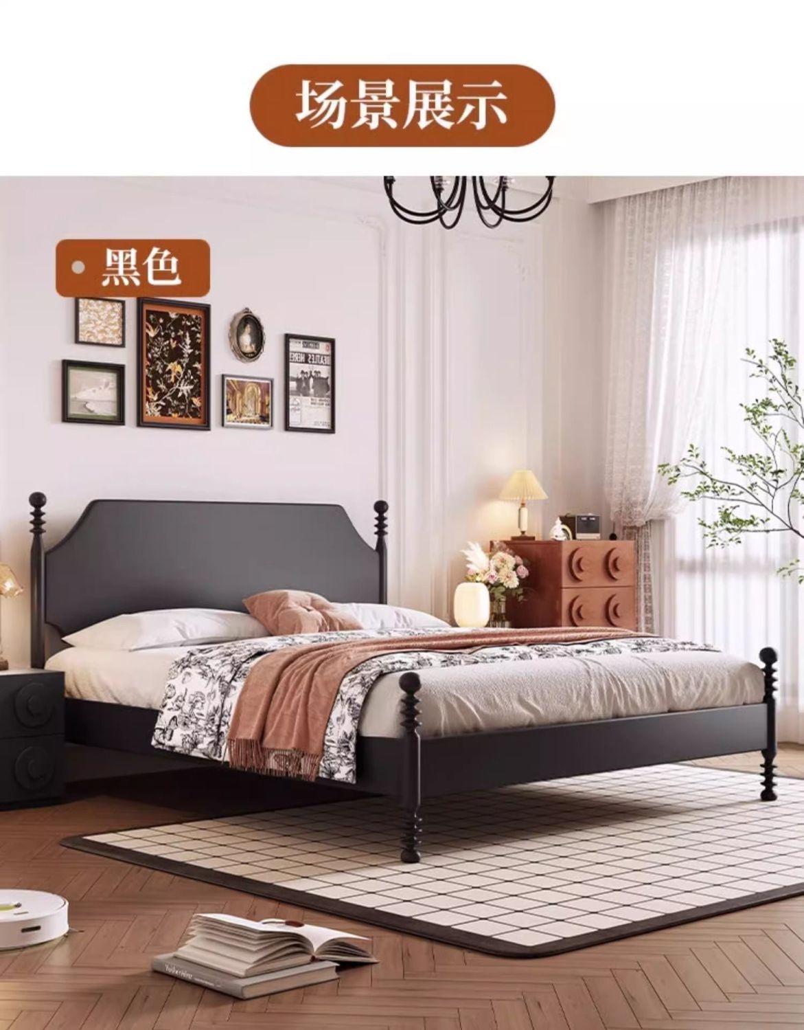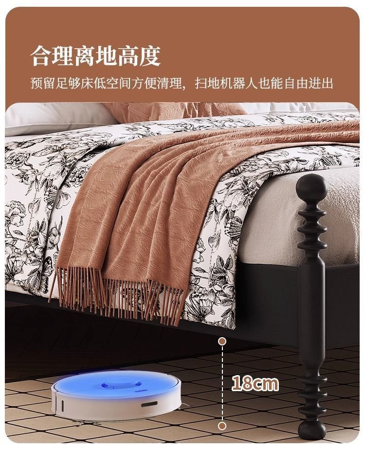 프랑스 스타일 레트로 단단한 나무 침대 현대 미국 스타일 간단한 홈스테이 더블 침대 블랙 중간 고대 스타일 미니멀리스트 작은 아파트 웨딩 침대스토어 가기