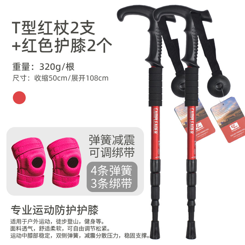 • T자형 트레킹 폴(빨간색) 2개 + 빨간색 무릎 패드 2개