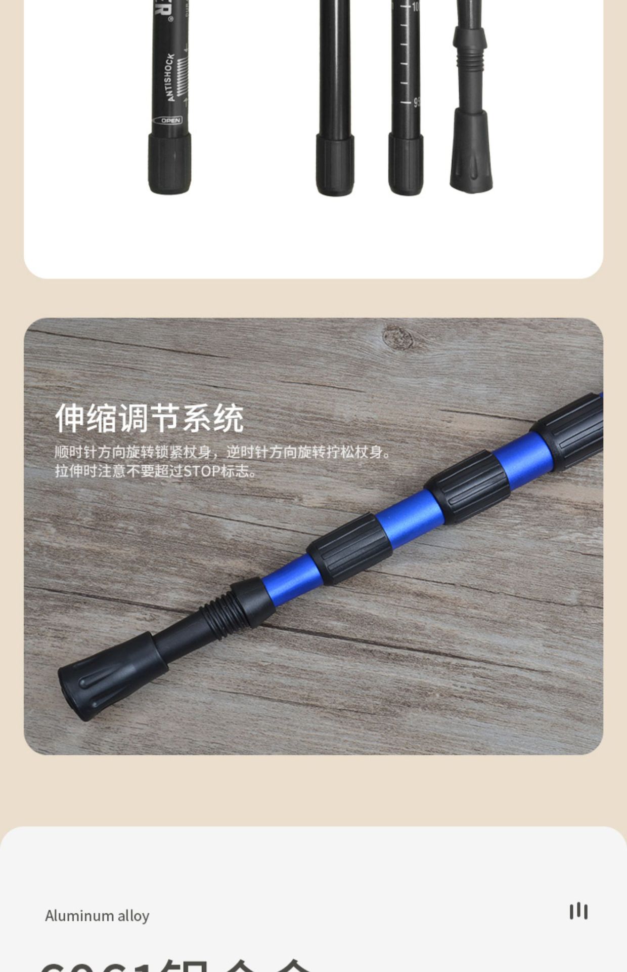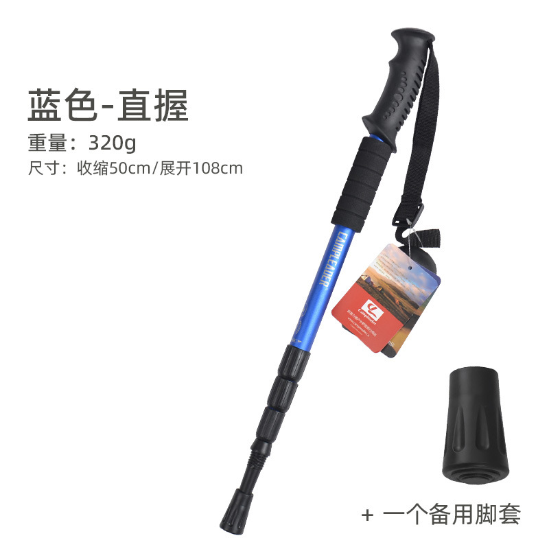 • 파란색 직선 그립 4섹션 트레킹 폴 + 예비 발 덮개 1개
