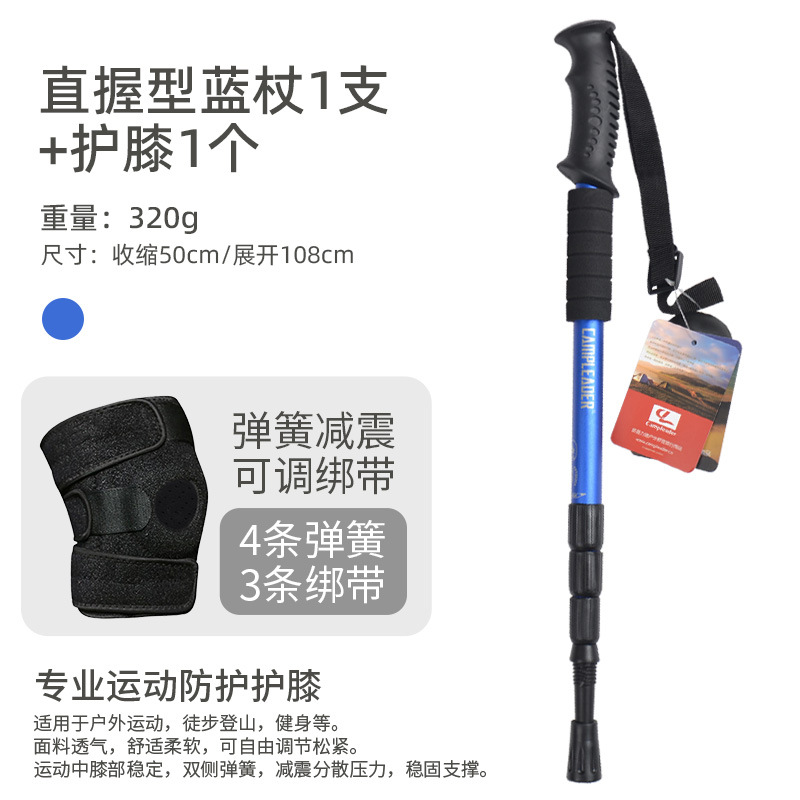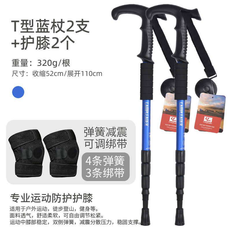 • T자형 손잡이 트레킹 폴 1개(색상에 대한 메시지를 남길 수 있음, 기본적으로 파란색) + 검정색 무릎 패드 1개