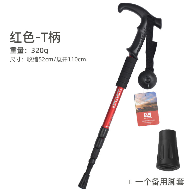 • 빨간색 T자형 손잡이 4단(양손잡이) 트레킹 폴 + 예비 발덮개 1개