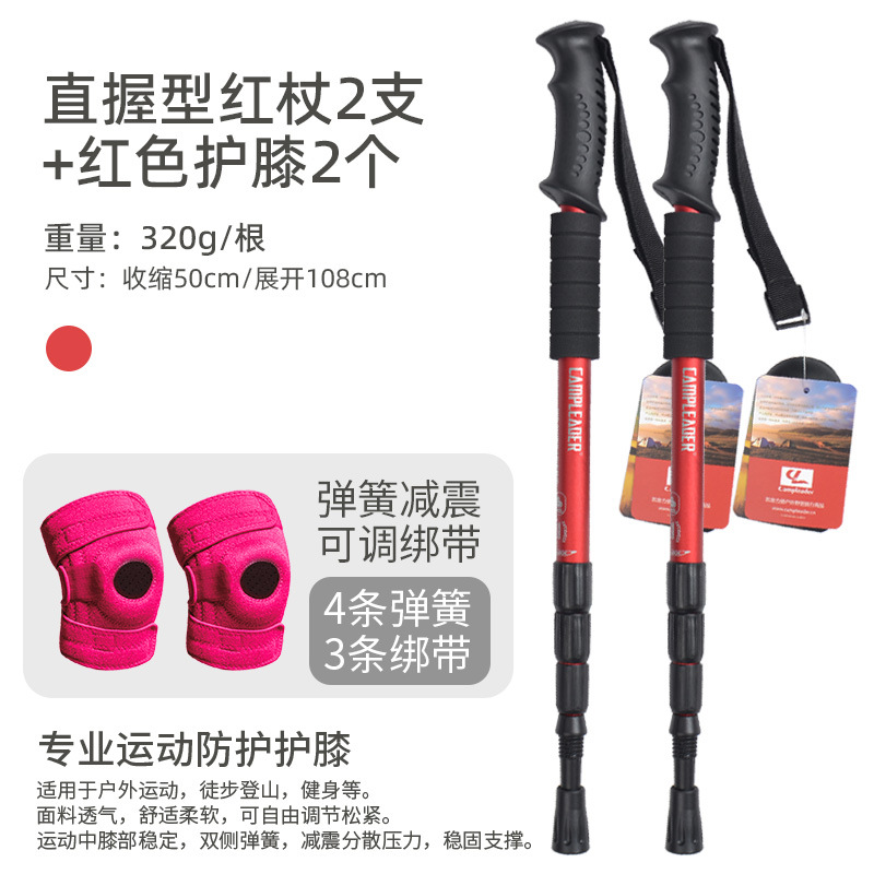 • 직선형 트레킹 폴 2개(빨간색) + 빨간색 무릎 패드 2개