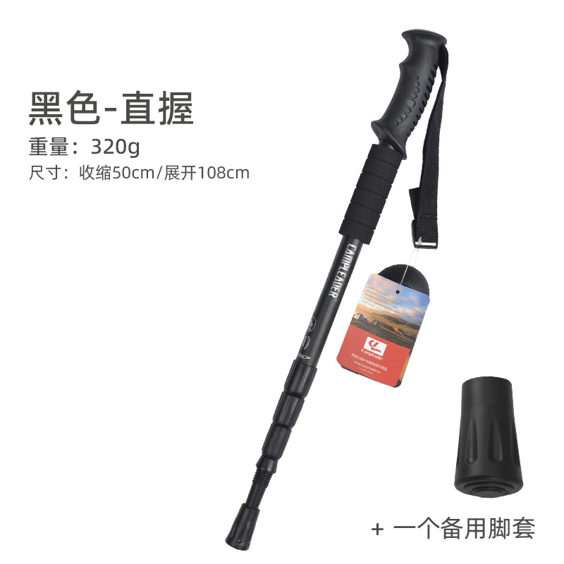 • 블랙 스트레이트 그립 4섹션 트레킹 폴 + 예비 발 커버 1개