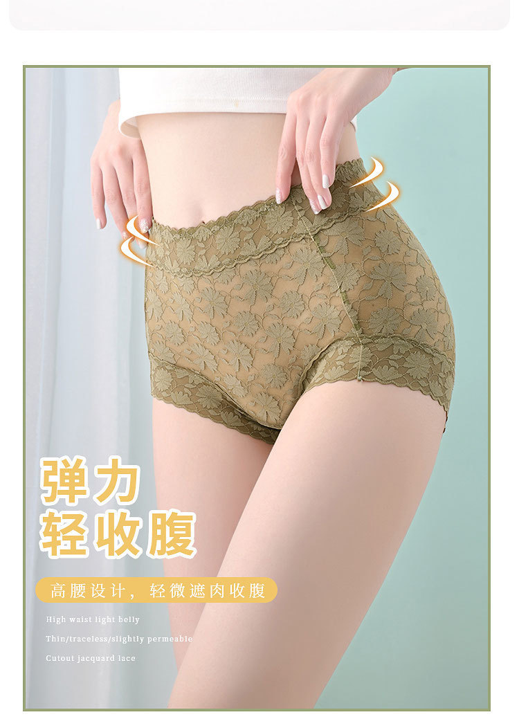 레이스 하이 허리 속옷 여성용 복부 엉덩이 리프팅 추적없는 통기성 여름 아이스 실크 섹시한 작은 배 반바지 얇은스토어 가기