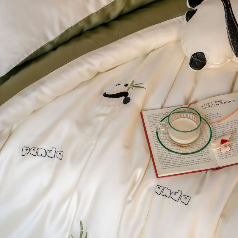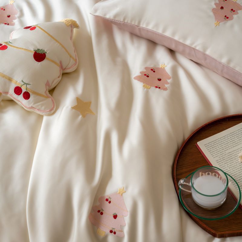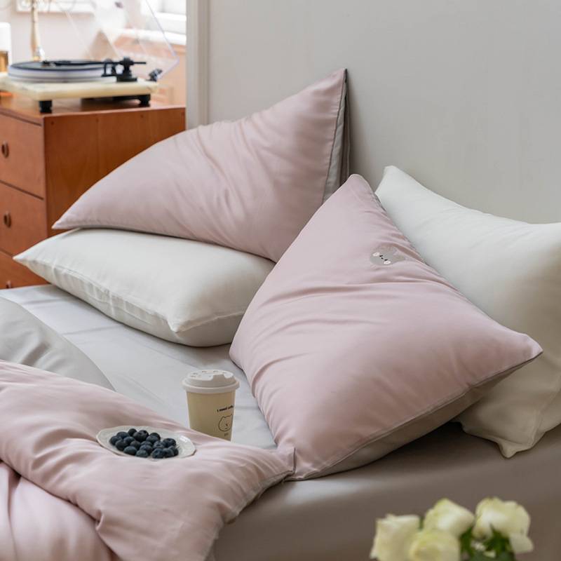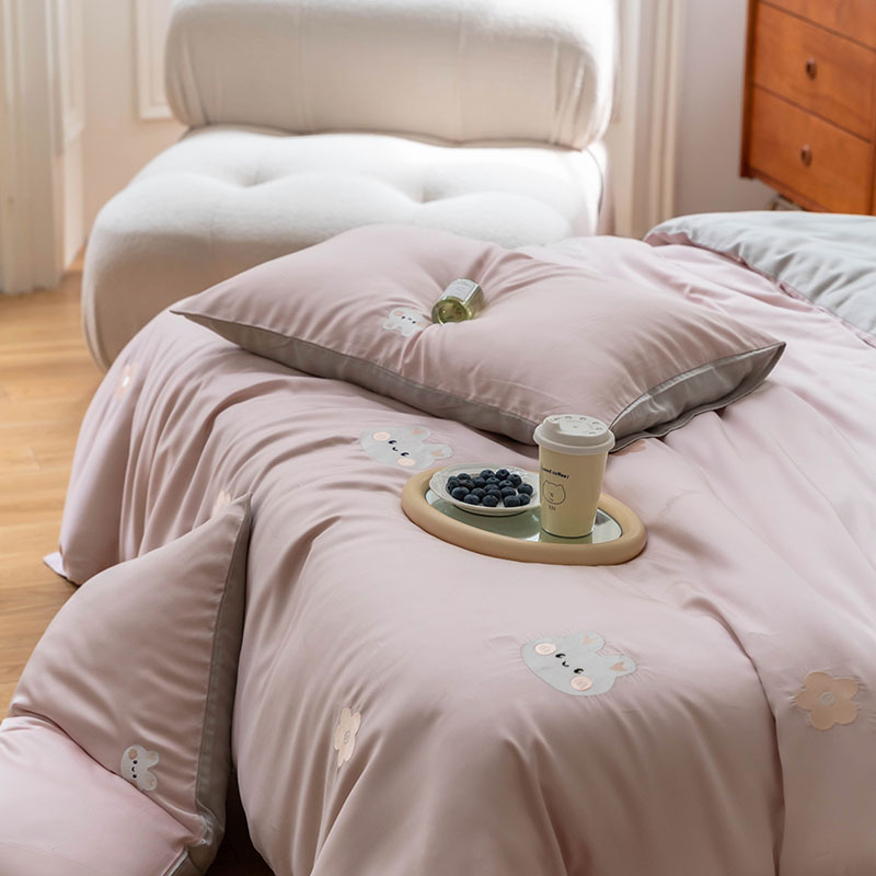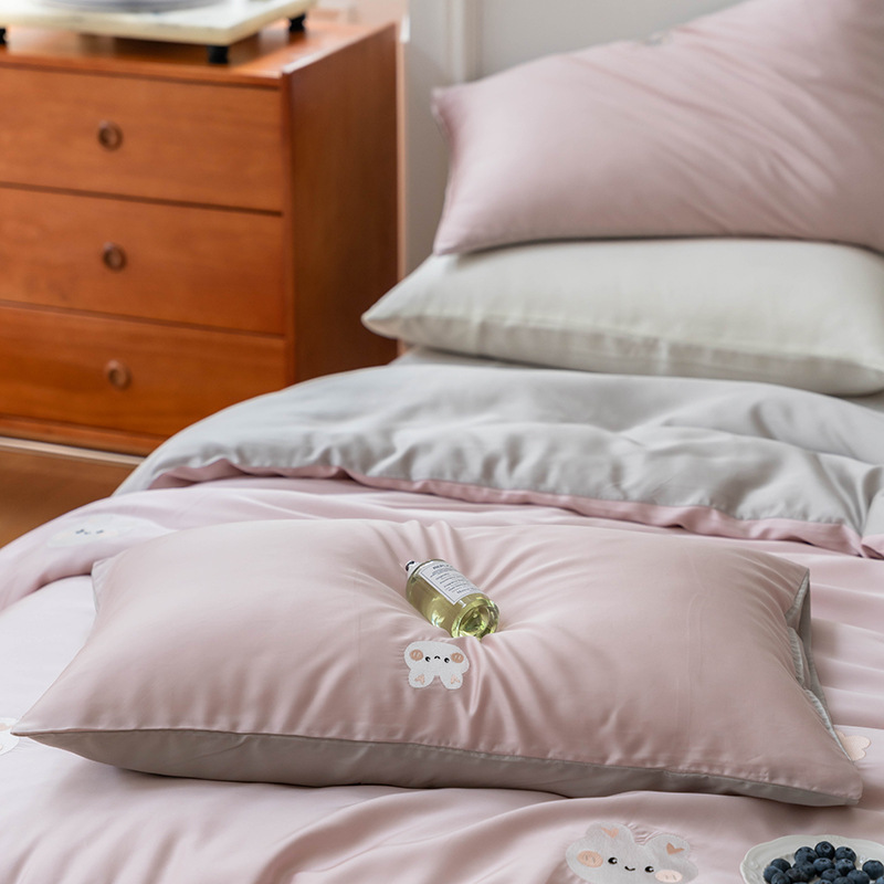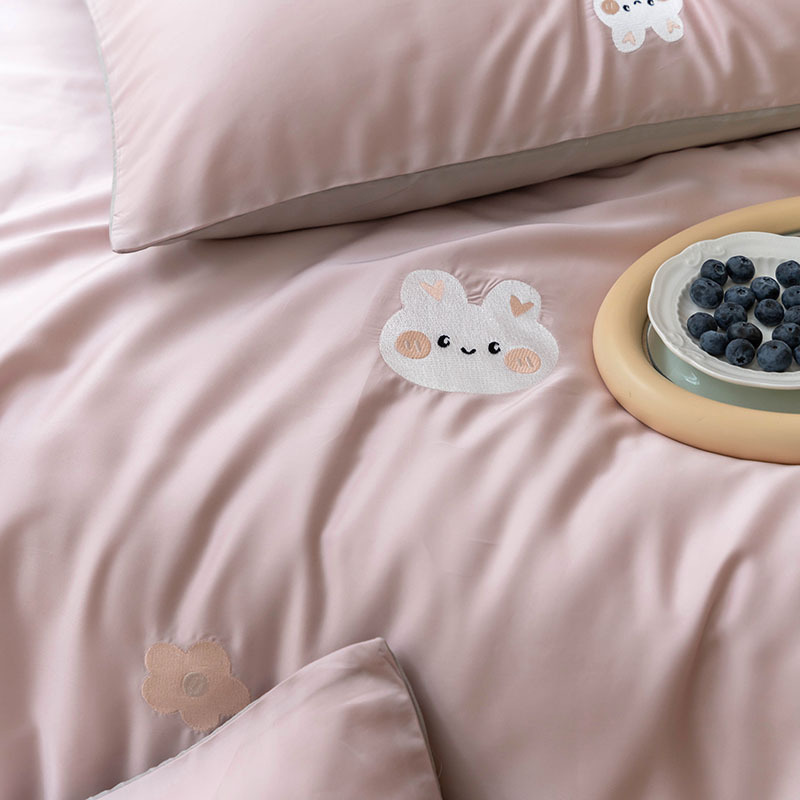 Ins 귀여운 만화 수 놓은 100 Lanjing Tencel 4 조각 세트 여름 아이스 실크 알몸 슬리핑 퀼트 커버 침대 시트스토어 가기