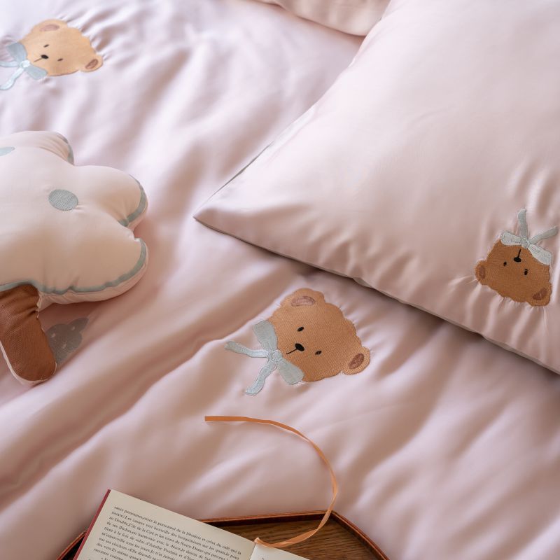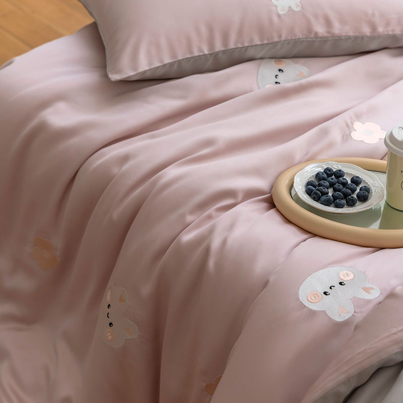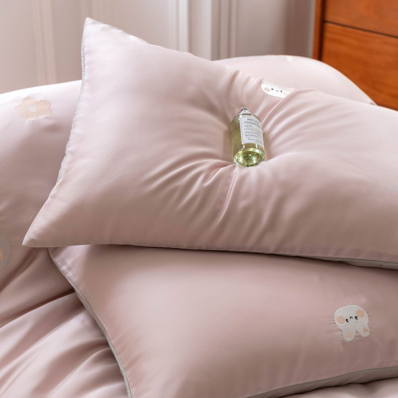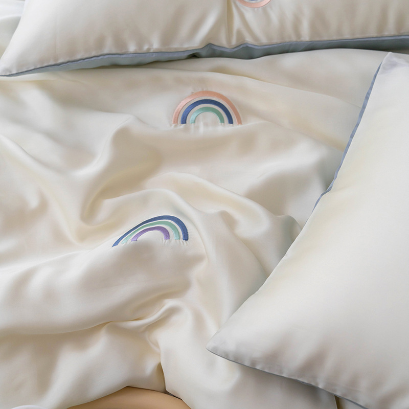 Ins 귀여운 만화 수 놓은 100 Lanjing Tencel 4 조각 세트 여름 아이스 실크 알몸 슬리핑 퀼트 커버 침대 시트