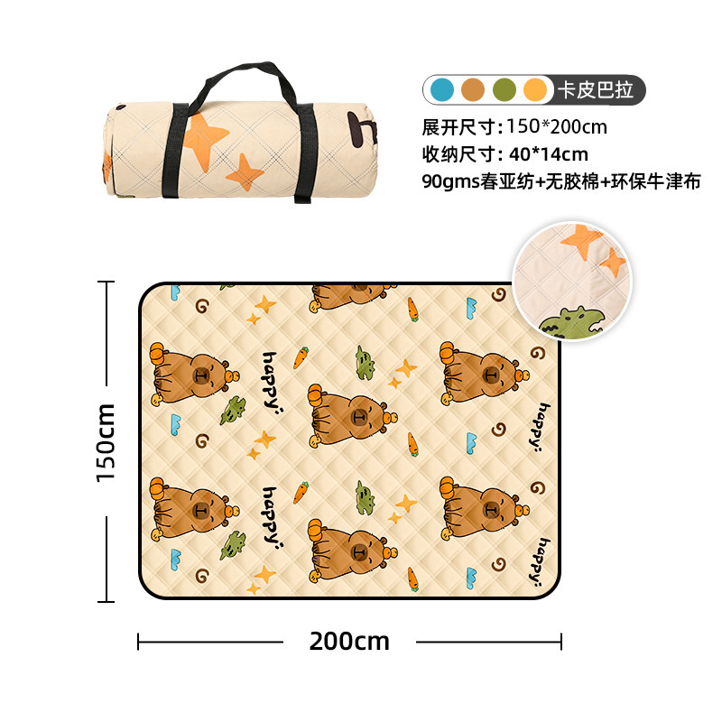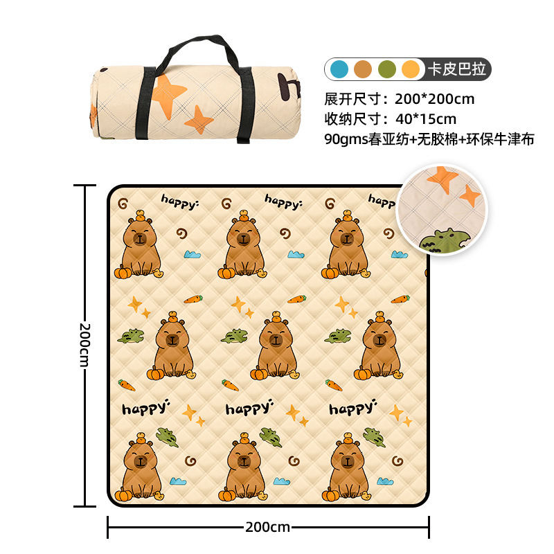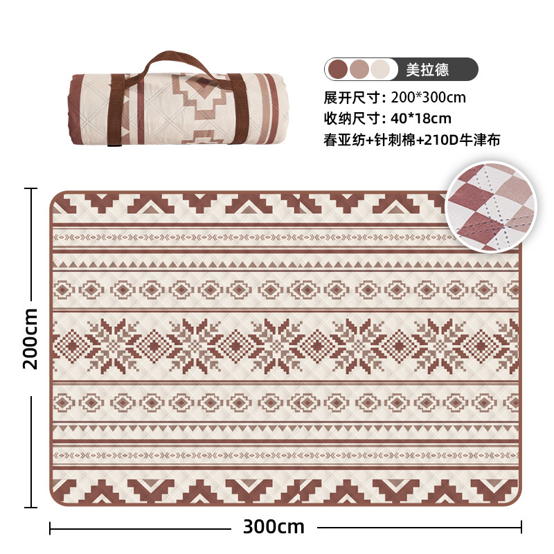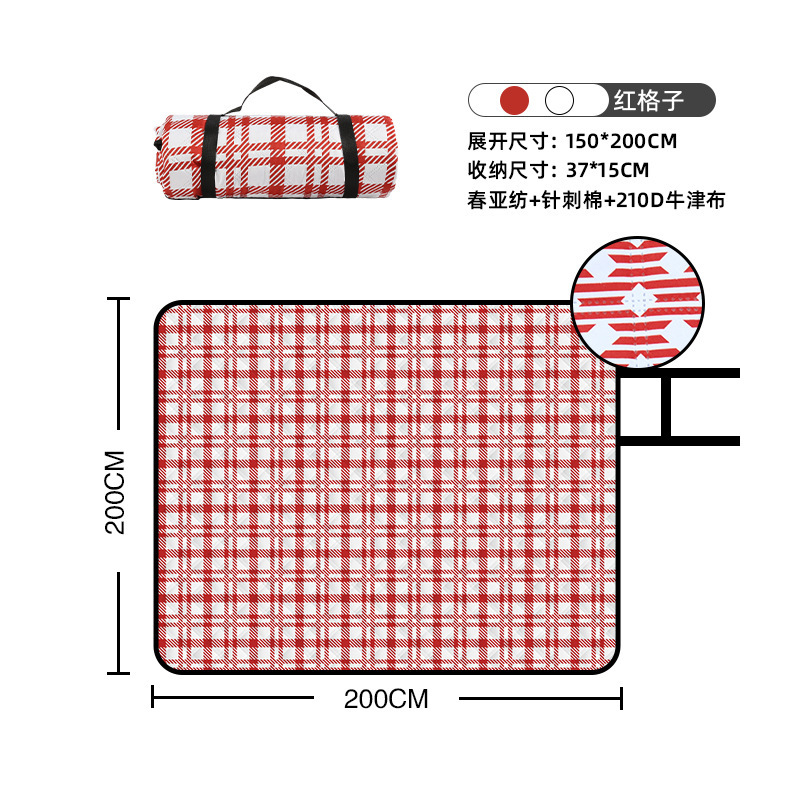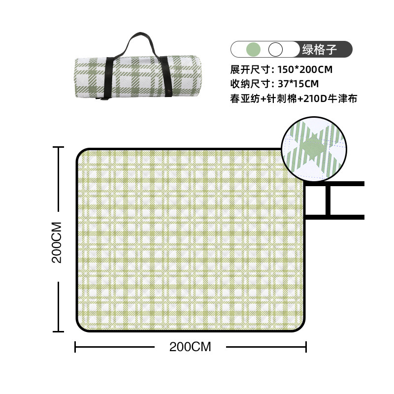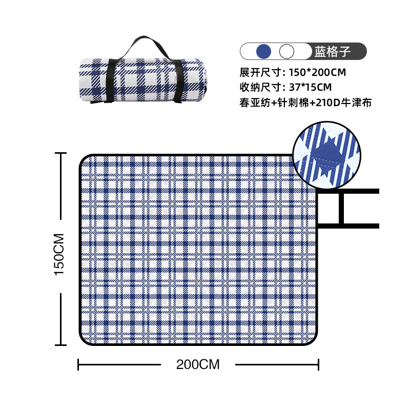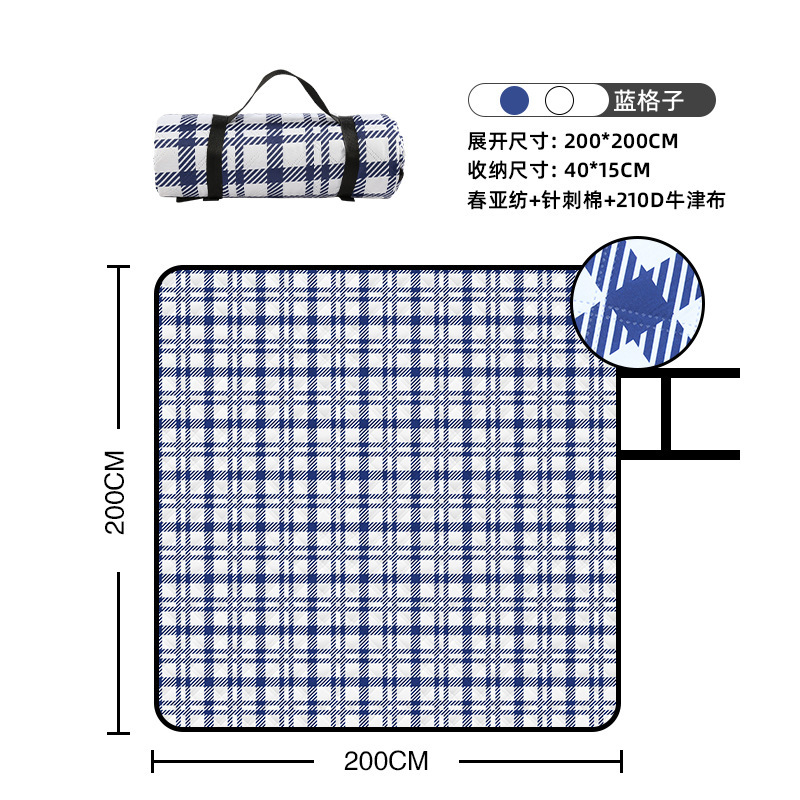 视频里面的是底部210D牛津布款式,300D牛津布防水(颜色蓝色)底部是老款,表面是没有防泼水的。作为野餐垫底部的防水层,牛津布抗撕裂,防水防潮,可机洗,柔韧性强,不会像PEVA在超声波绗缝中容易被打出洞,从而影响防水和品质,并且牛津布底可以适应大多数地形场景,我司中间的填充针刺棉是80gsm,市面上常规的是60gsm,更厚更舒适,接下来我司会陆续推出时下时尚的款式,尺寸也会把2*3米和3*3米的加进来,后期更会推出防水很好的铝膜底的超声波野餐垫,具有更好的防水能力,可以隔绝冷热,铺在帐篷里面露营非常合适,耐撕裂,厚度更厚(克重达到110gsm左右,市面上PEVA 75gsm),耐磨性更强,如对我们后期推出的新品感兴趣,欢迎咨询选购。