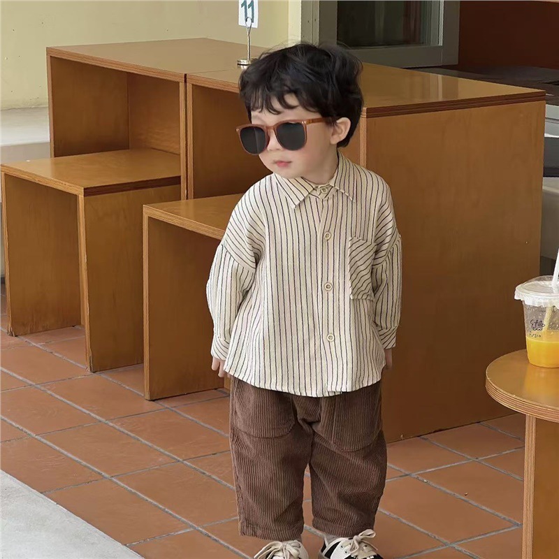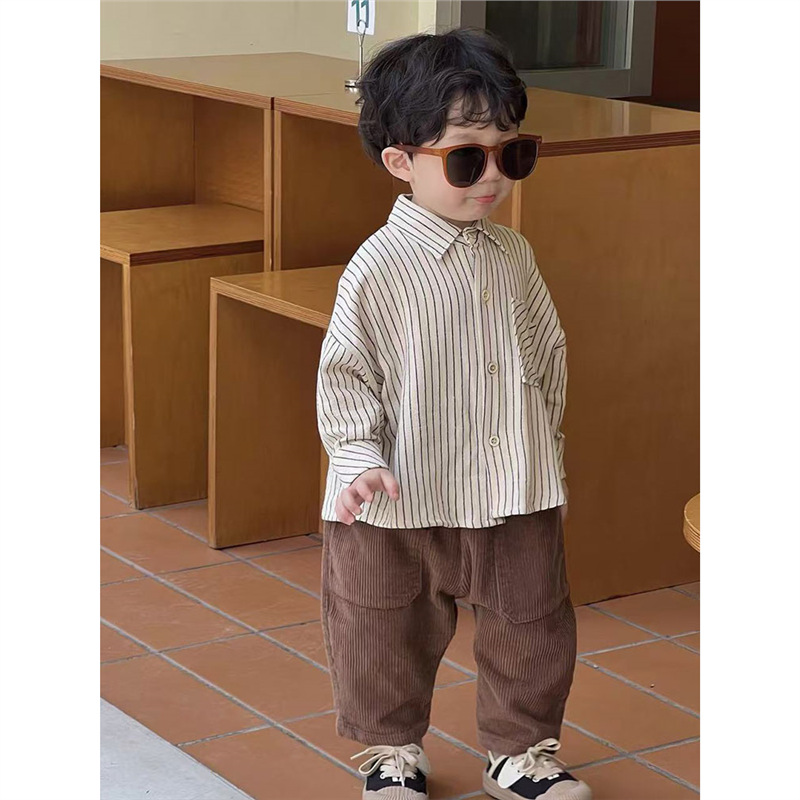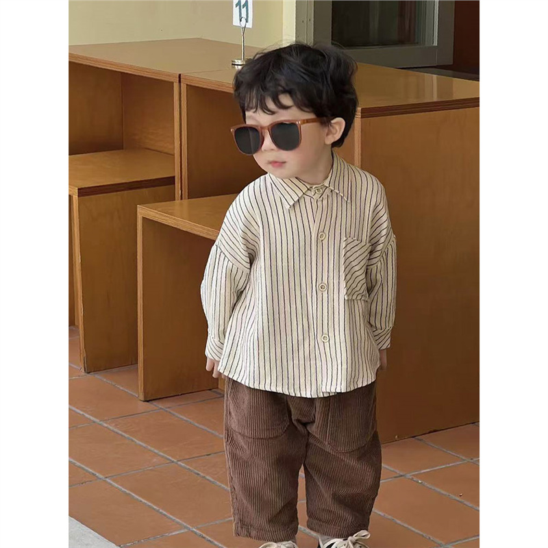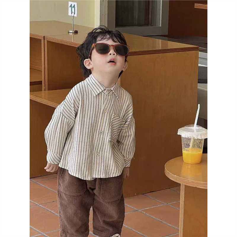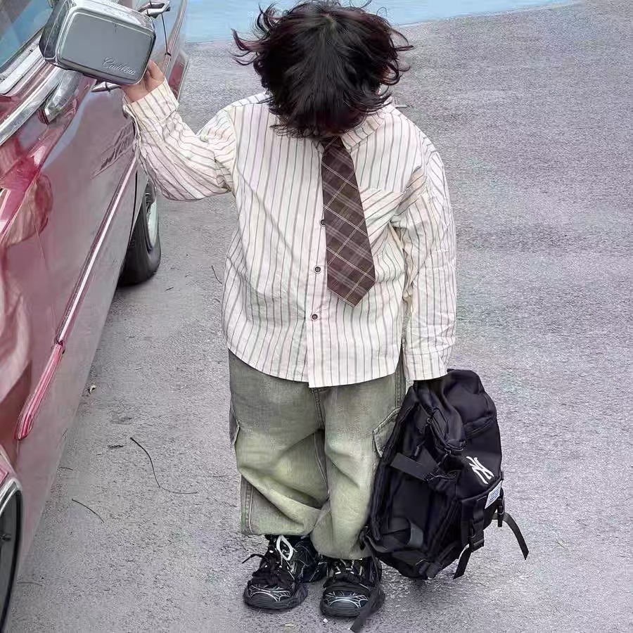 소년 긴 소매 셔츠 봄과 가을 2025 새로운 어린이 잘 생긴 패션 줄무늬 옷 소년 아기를위한 캐주얼 셔츠
