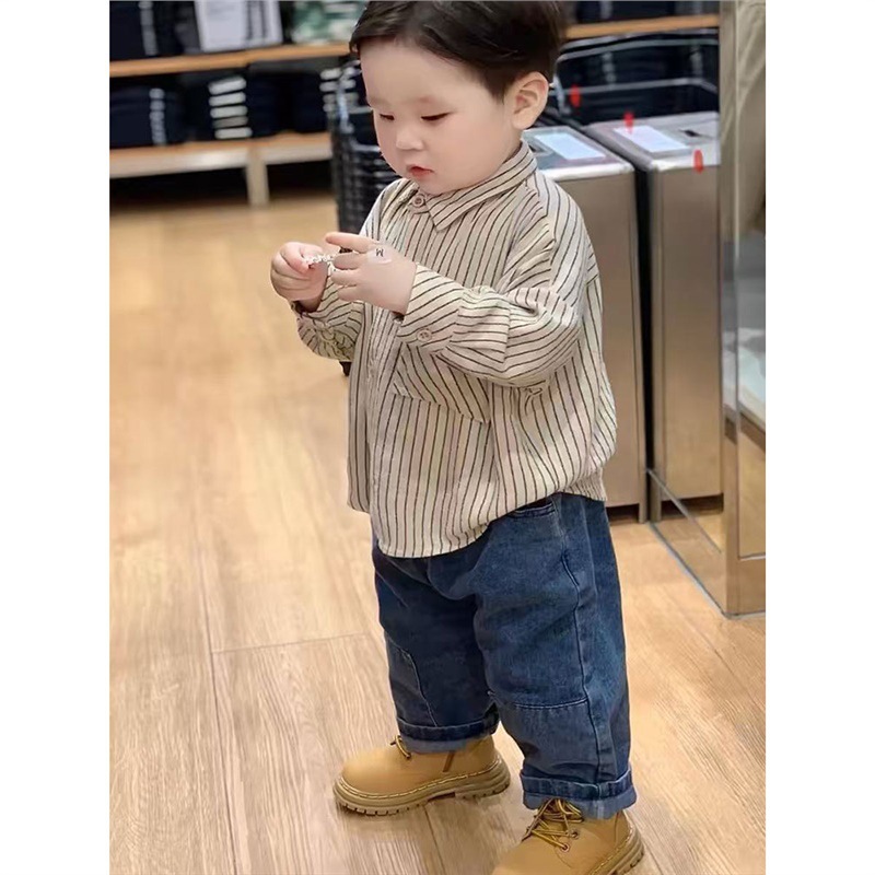 소년 긴 소매 셔츠 봄과 가을 2025 새로운 어린이 잘 생긴 패션 줄무늬 옷 소년 아기를위한 캐주얼 셔츠스토어 가기