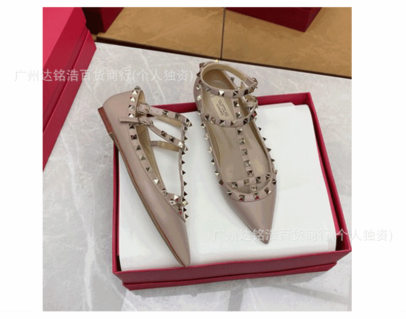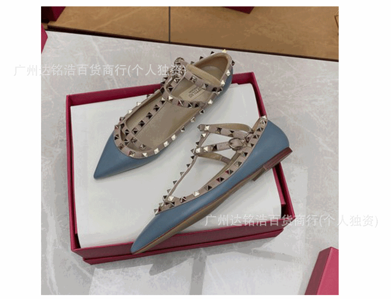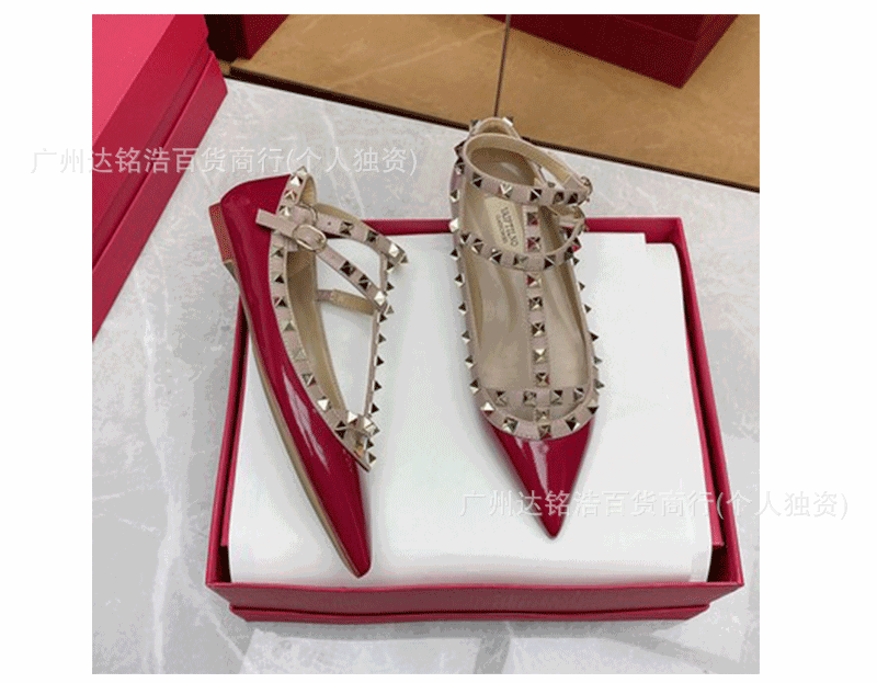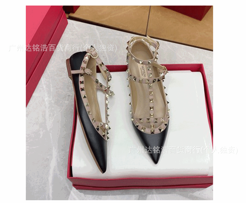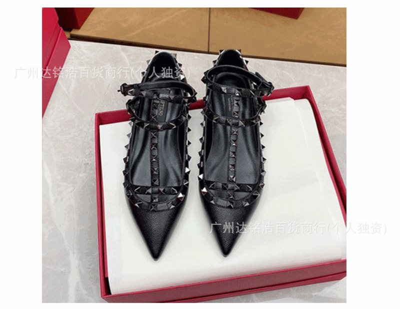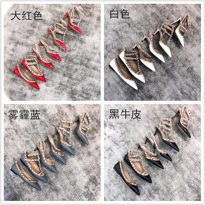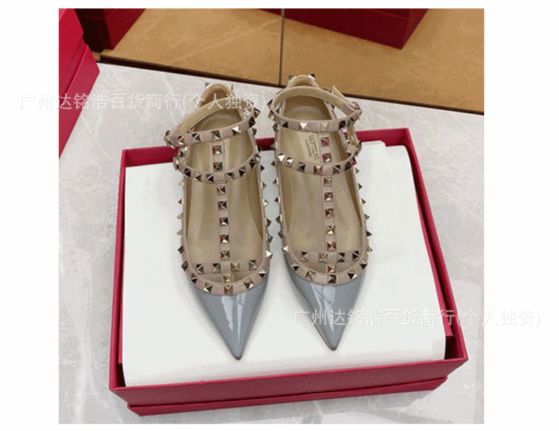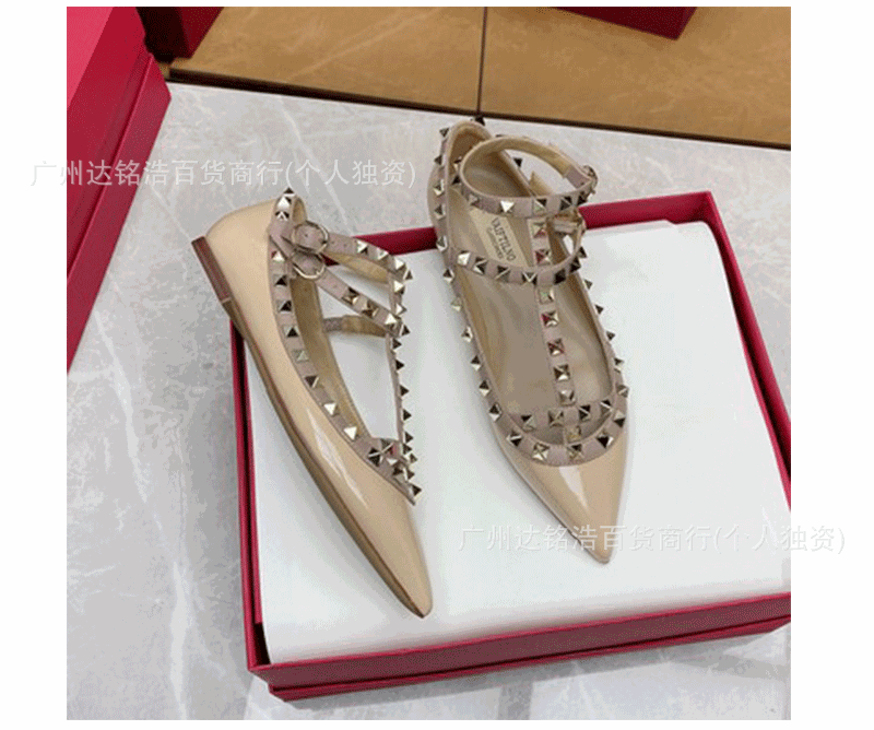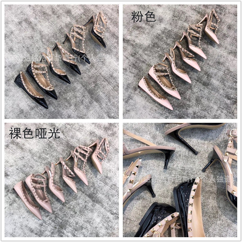 2026 화렌 리벳 하이힐 V-스타일 얕은굽 슈즈 포인티드 토 스틸레토 플랫 슈즈 리벳 샌들 여성용 소가죽 페이턴트 가죽스토어 가기