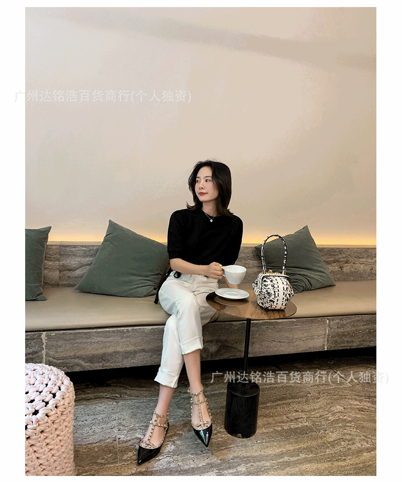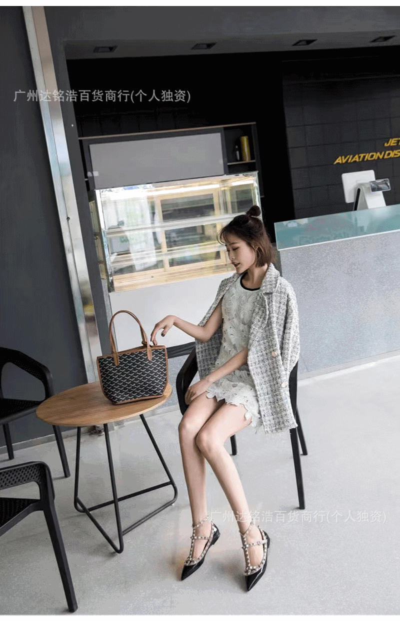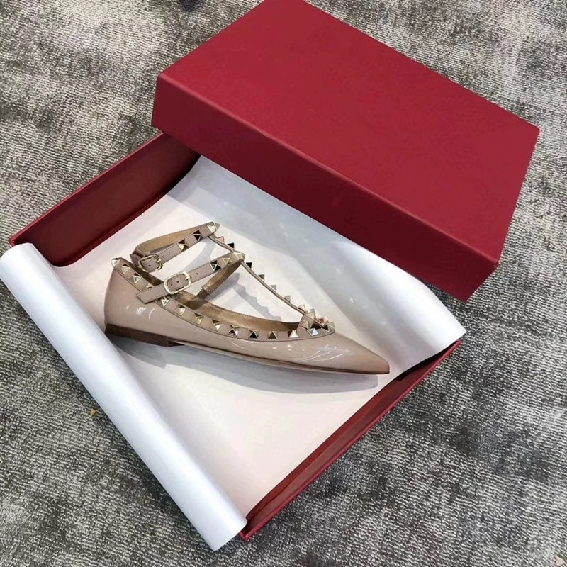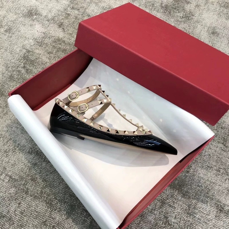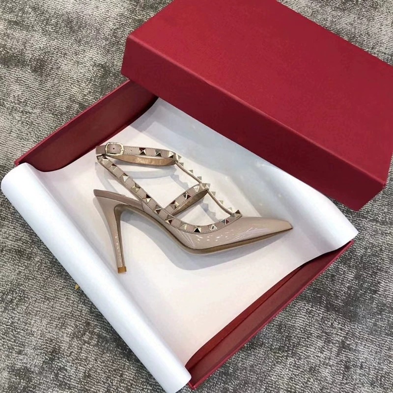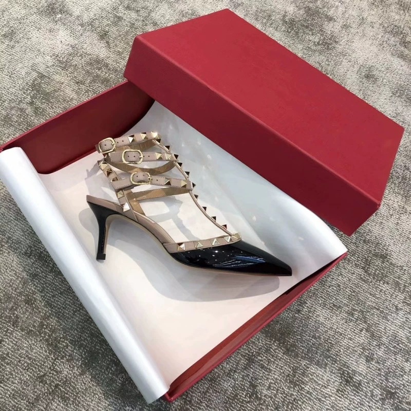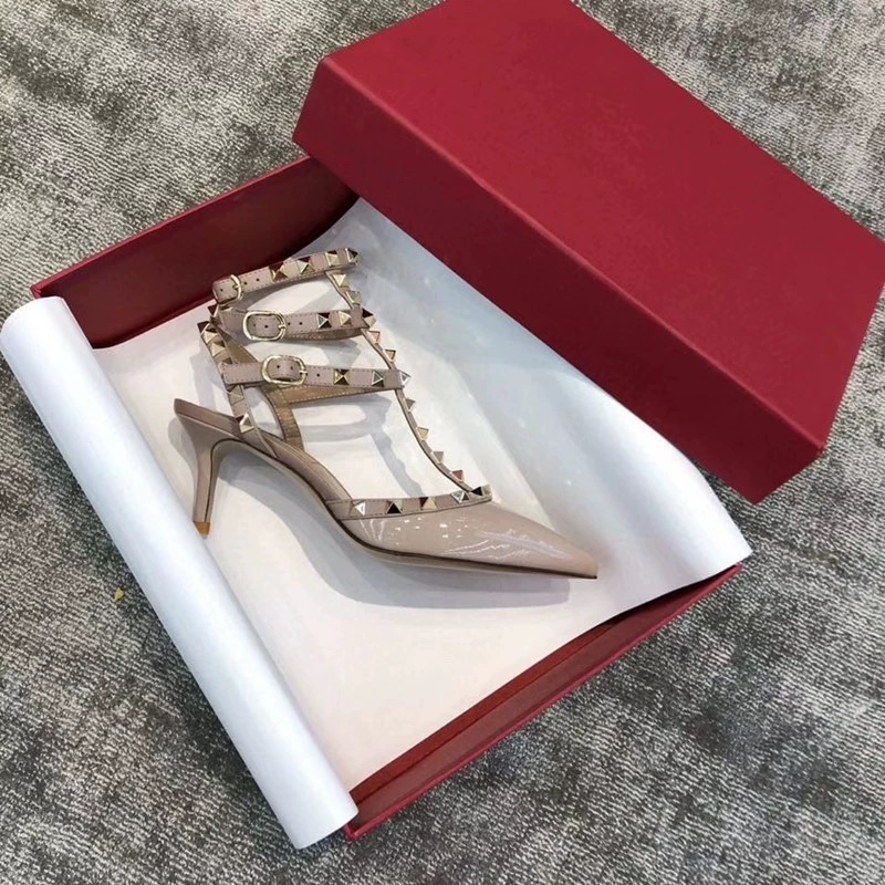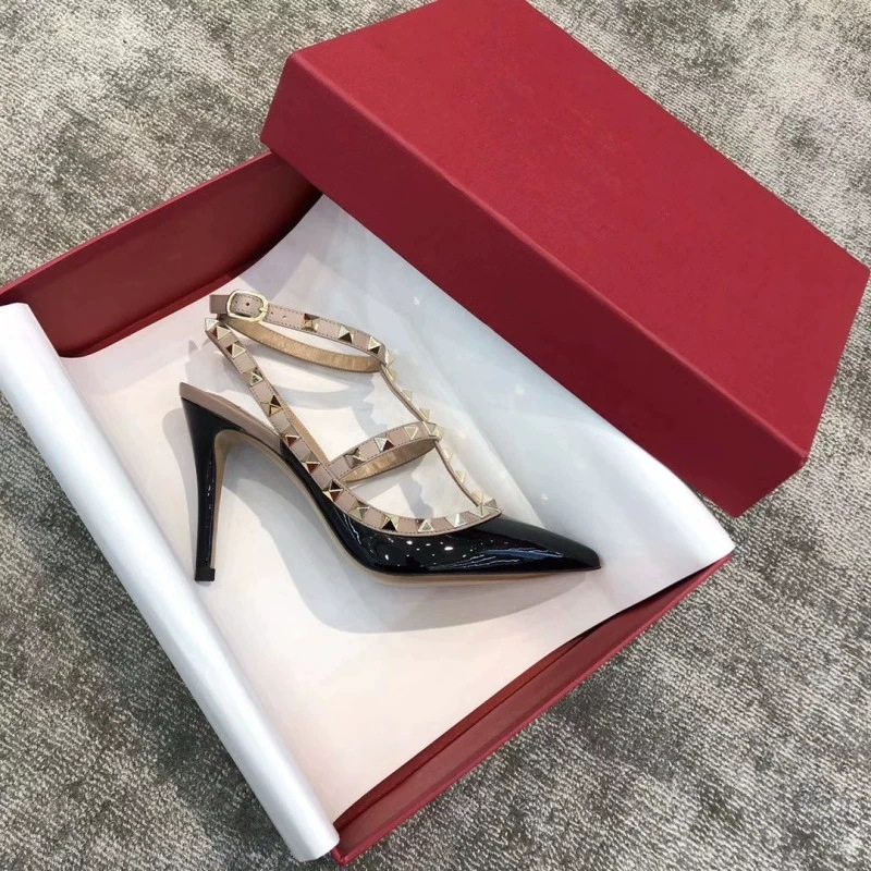 2026 화렌 리벳 하이힐 V-스타일 얕은굽 슈즈 포인티드 토 스틸레토 플랫 슈즈 리벳 샌들 여성용 소가죽 페이턴트 가죽스토어 가기