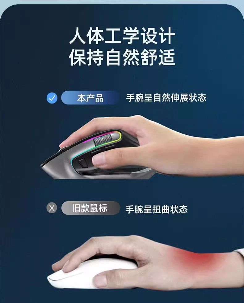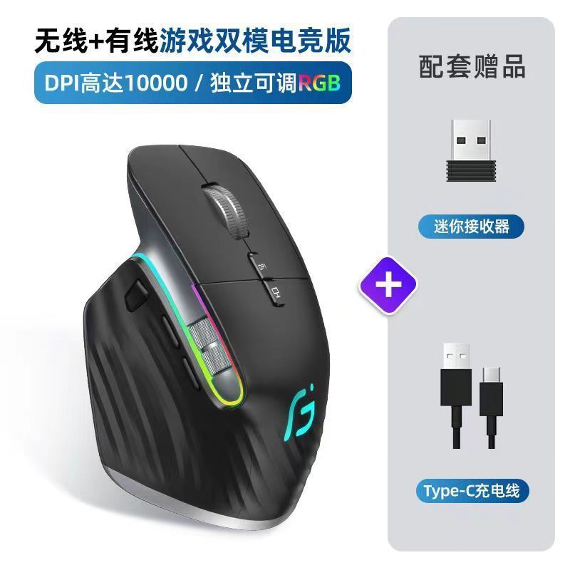 • 맞춤형 드라이버가 포함된 회색 2.4G 무선 + Bluetooth + 유선 경쟁 모델