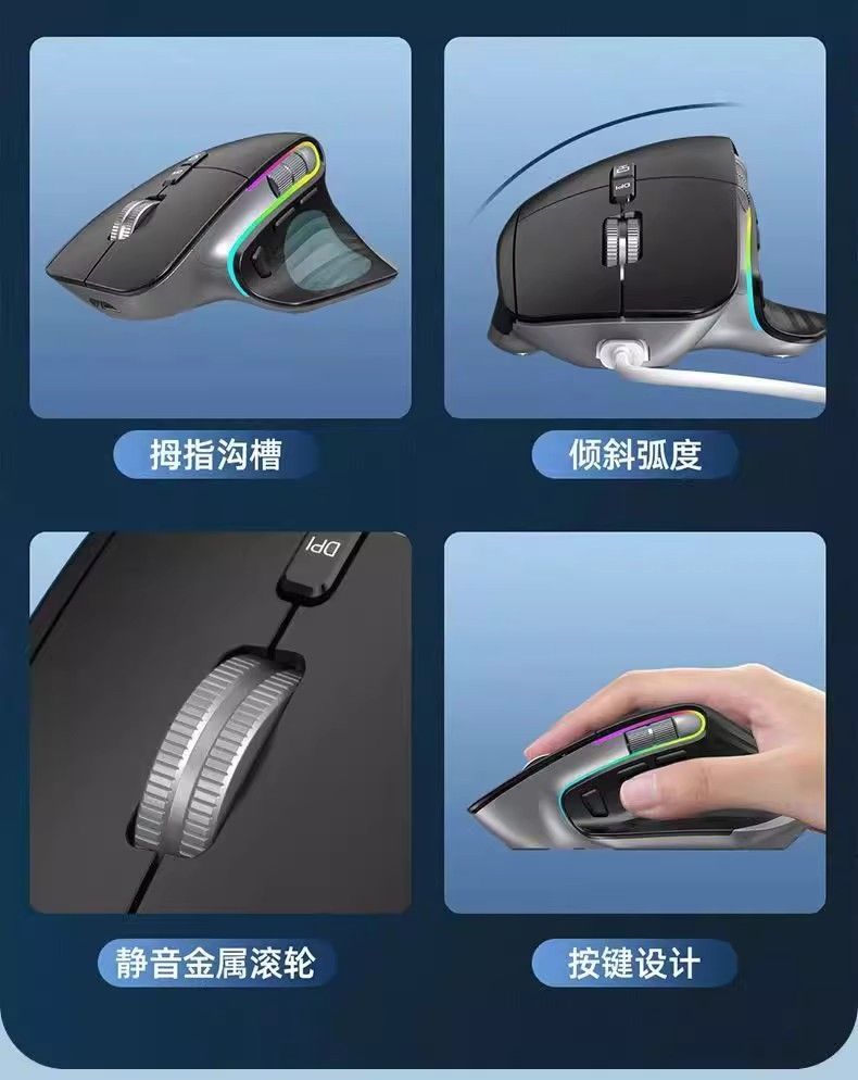 • 2.4G+듀얼 블루투스 그레이 5레벨 4000DPI