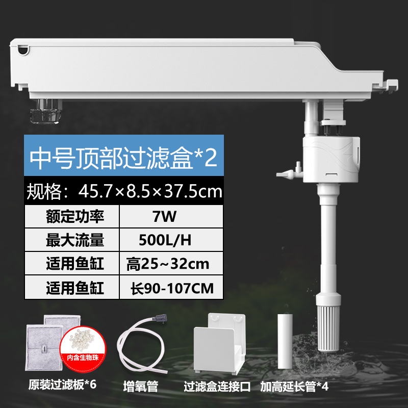 • **흰색 쓰리인원 7+7W 펌프+필터 박스+필터 면은 길이 90-107cm 수조에 적합합니다**