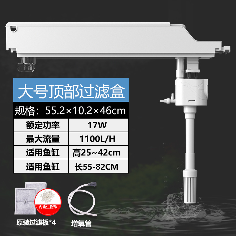• **흰색 쓰리인원 17W 펌프 + 필터 박스 + 필터 면은 길이 55-82cm의 수조에 적합합니다**