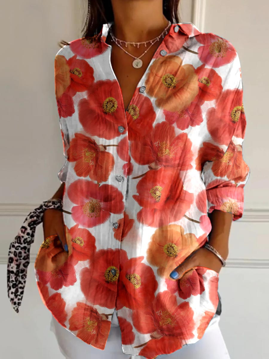 독립 역 플러스 사이즈 여성의 새로운 긴 소매 버튼 셔츠 해양 꽃 여성 버튼 셔츠 캐주얼 핫 세일