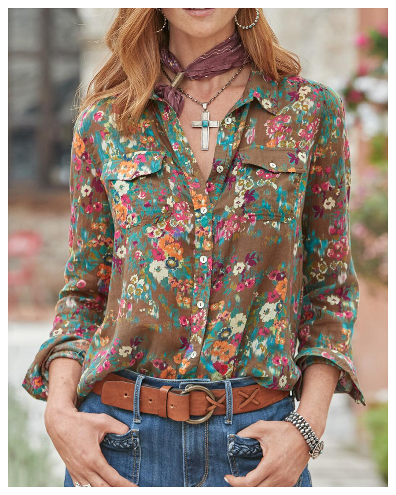 독립 역 플러스 사이즈 여성의 새로운 긴 소매 버튼 셔츠 해양 꽃 여성 버튼 셔츠 캐주얼 핫 세일스토어 가기