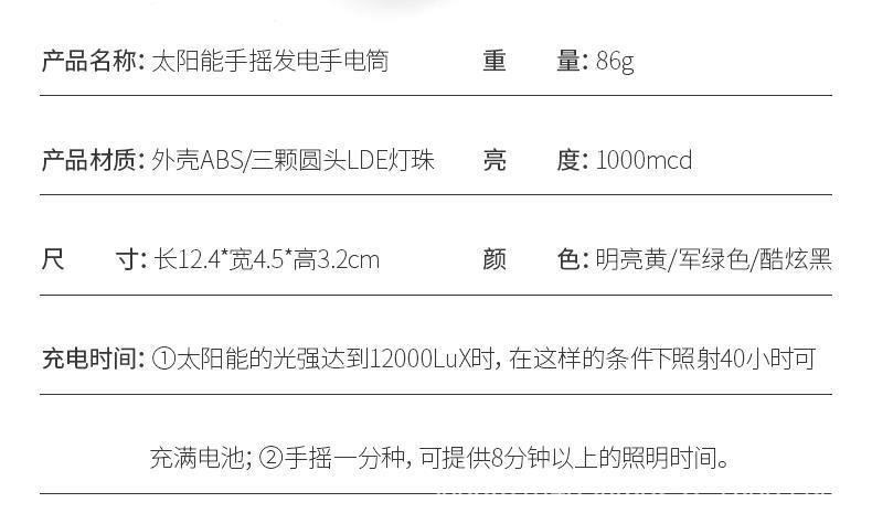 야외 비상 손전등 태양 LED 손전등 손 발전 휴대용 비상 등반 캠핑 라이트스토어 가기