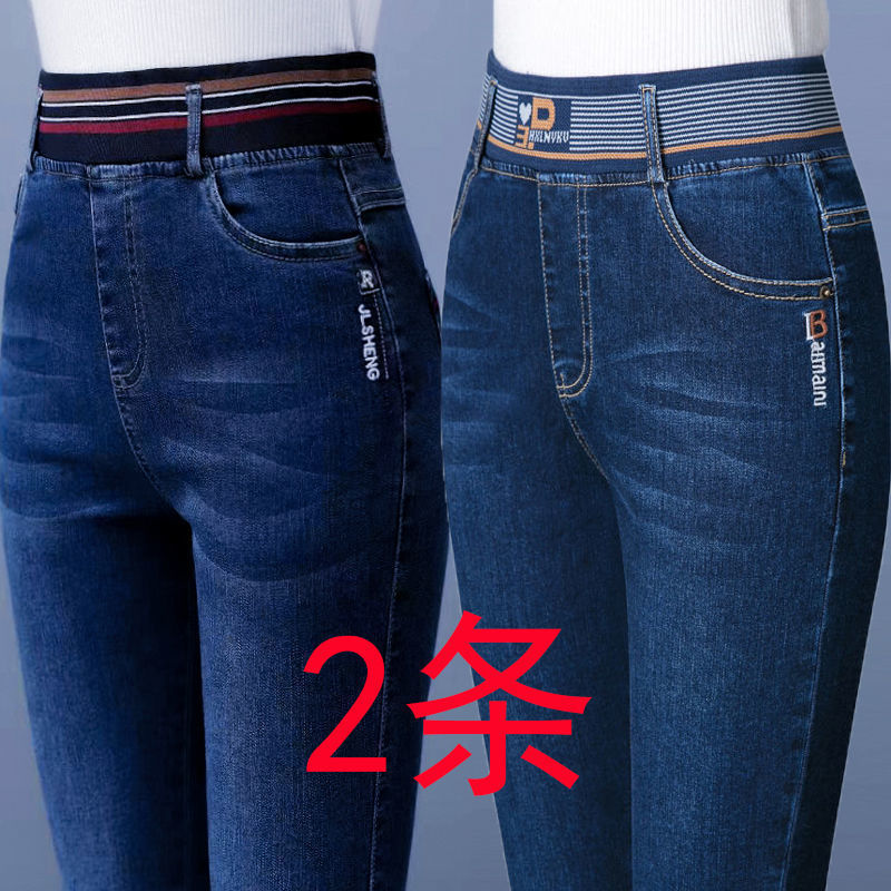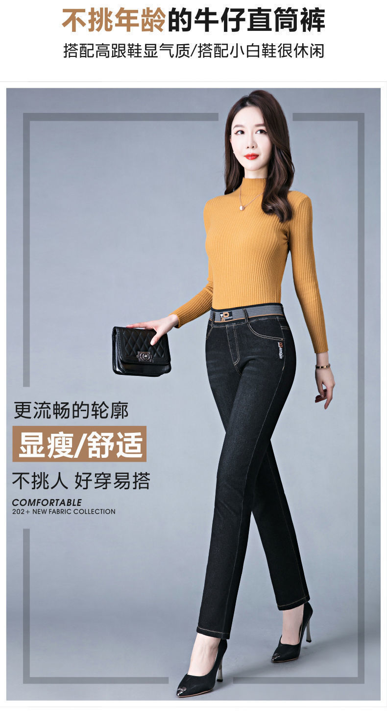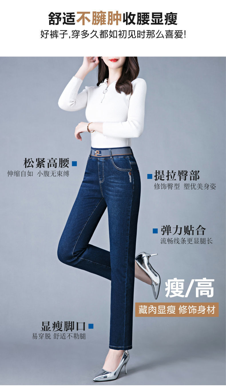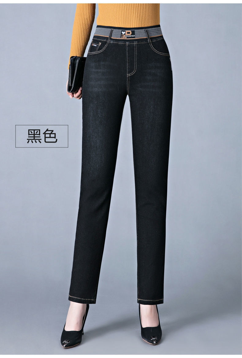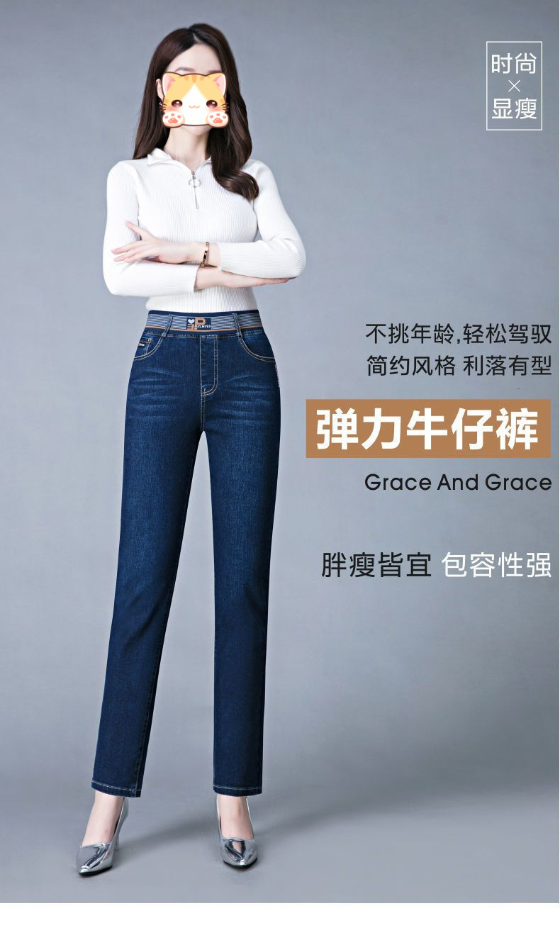 높은 허리 스트레치 청바지 여성의 2025 새로운 직선 느슨한 플러스 사이즈 봄과 가을 탄성 허리 슬림 핏 슬리밍 바지스토어 가기