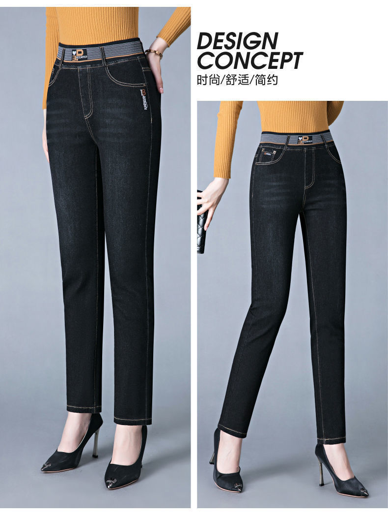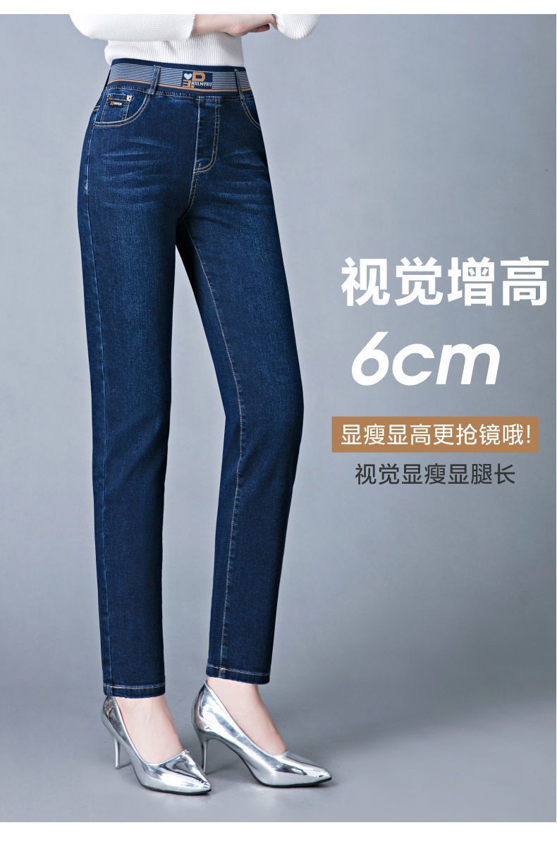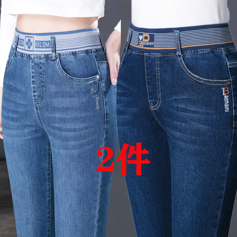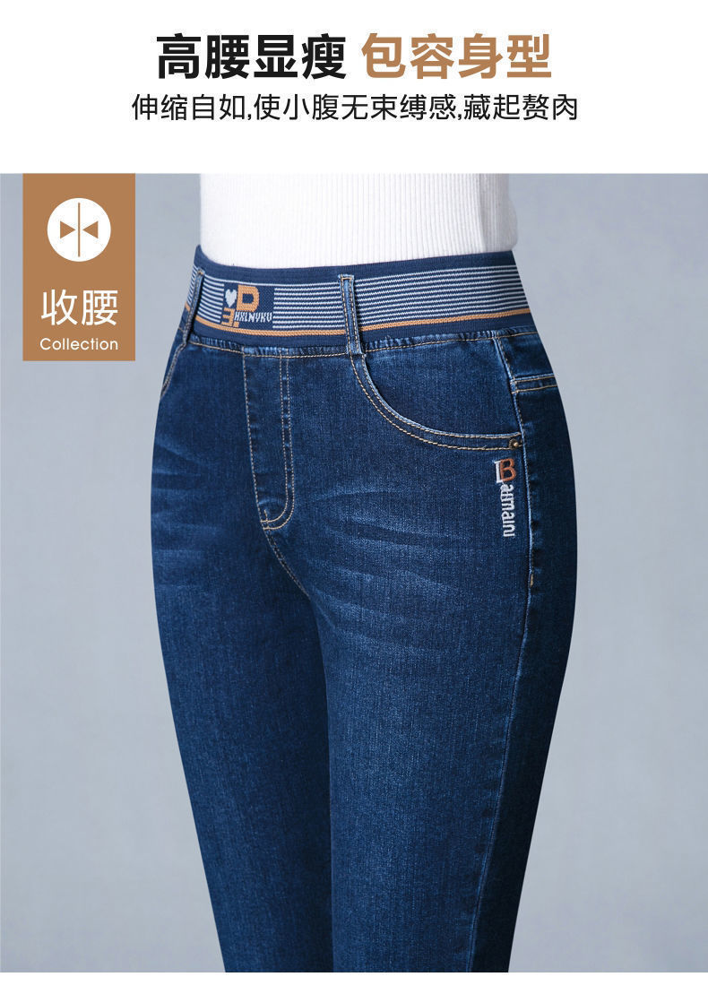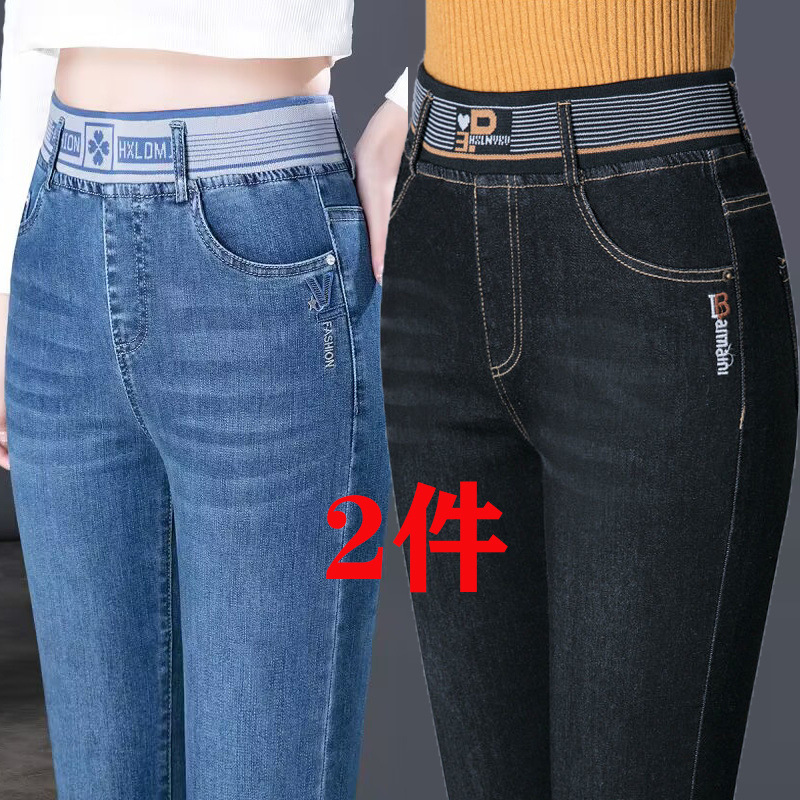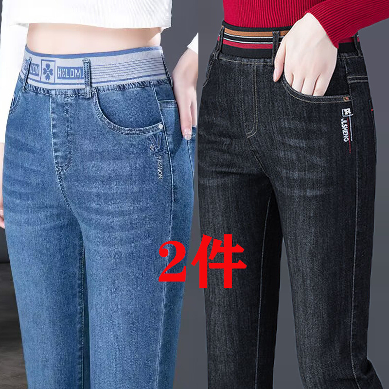 높은 허리 스트레치 청바지 여성의 2025 새로운 직선 느슨한 플러스 사이즈 봄과 가을 탄성 허리 슬림 핏 슬리밍 바지스토어 가기