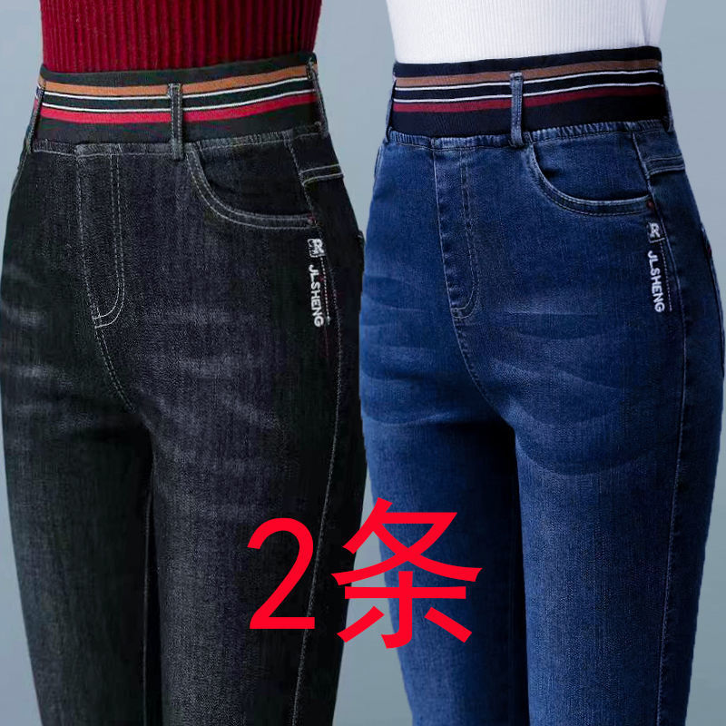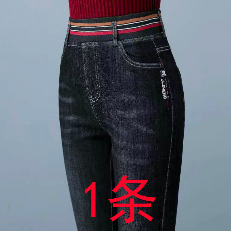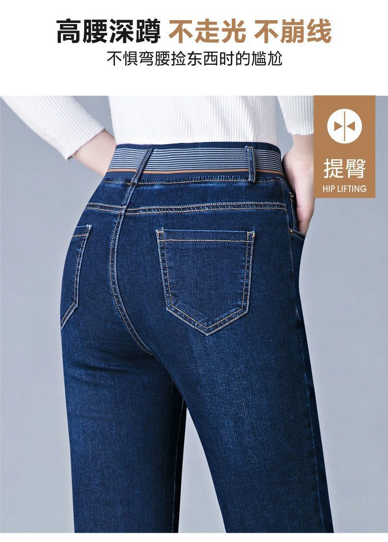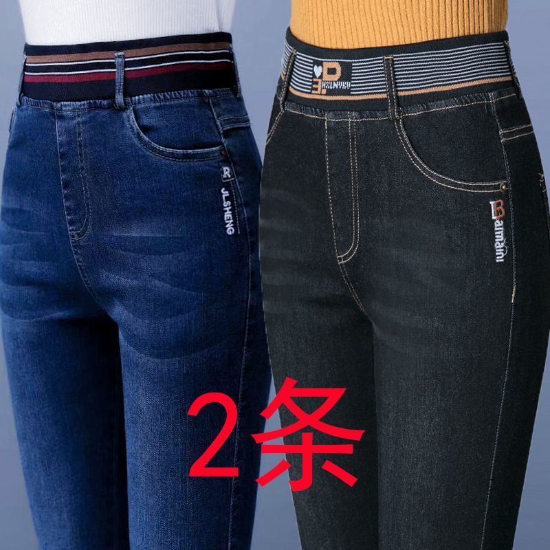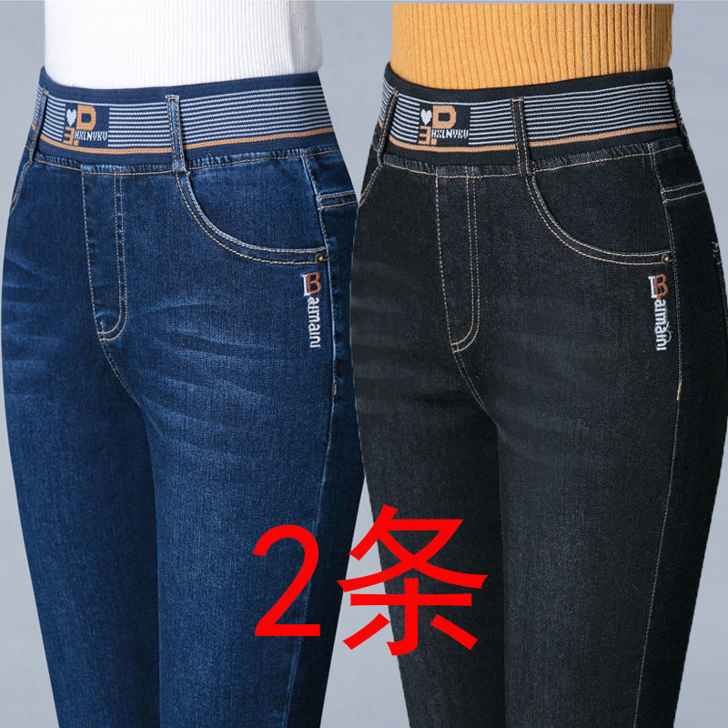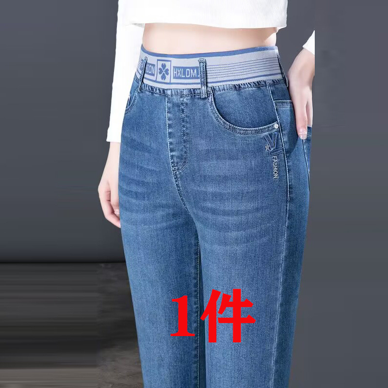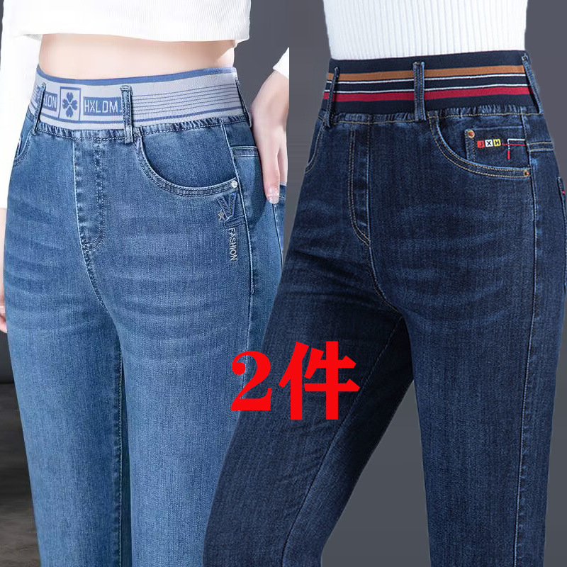 높은 허리 스트레치 청바지 여성의 2025 새로운 직선 느슨한 플러스 사이즈 봄과 가을 탄성 허리 슬림 핏 슬리밍 바지스토어 가기