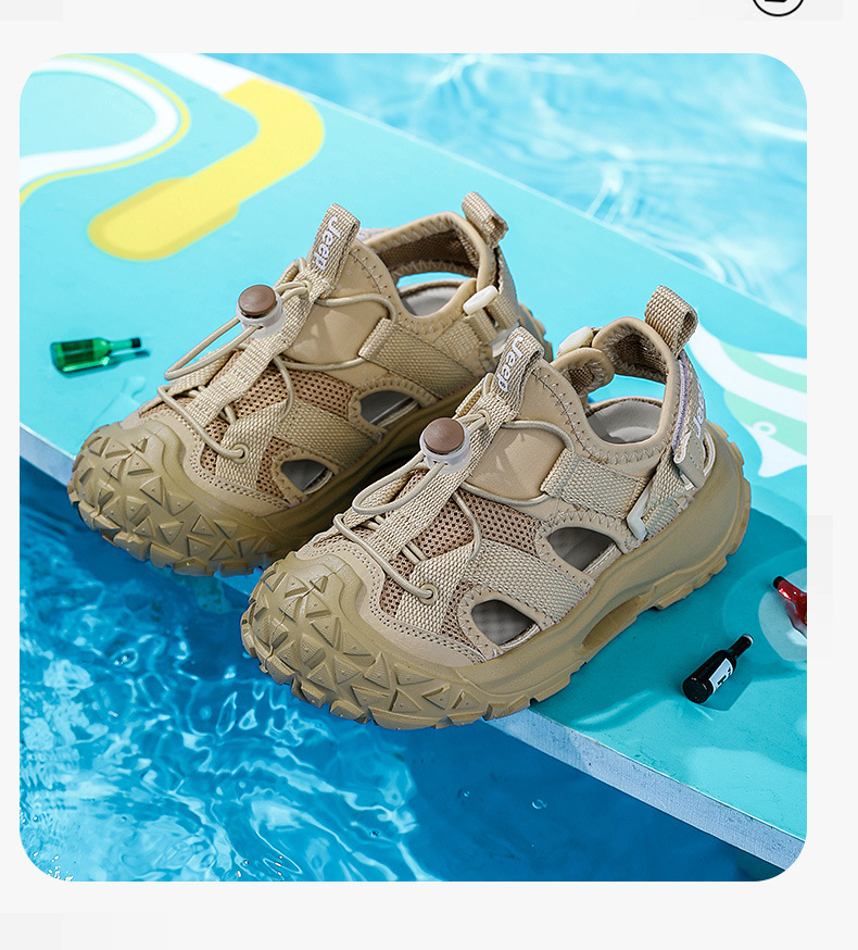 지프 어린이 샌들 여름 속이 빈 운동화 2025 새로운 통기성 미끄럼 방지 비치 신발 소년 그물 신발