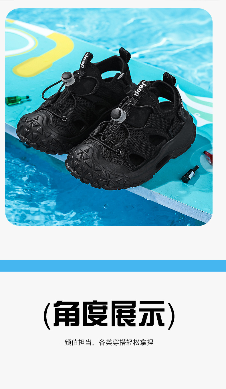 지프 어린이 샌들 여름 속이 빈 운동화 2025 새로운 통기성 미끄럼 방지 비치 신발 소년 그물 신발스토어 가기
